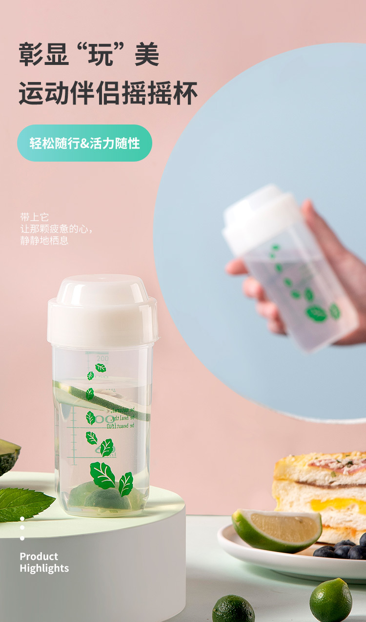 スポーツポータブルシェーカーカップ防水パウダーミルクセーキカップスケール 200 ミリリットル大口径ドリンクカップカスタマイズ