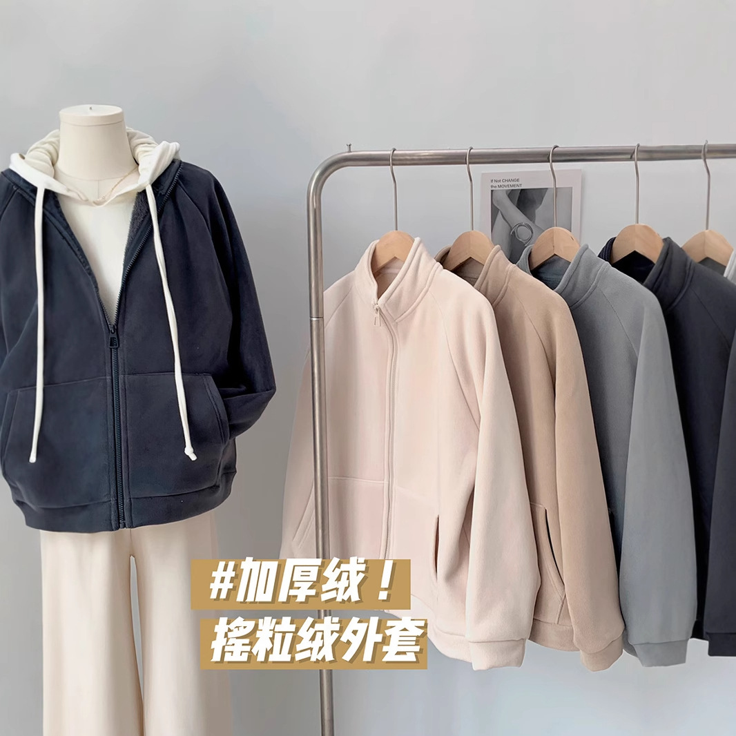 安婷露961#立领外套女冬款加厚奥粒绒面料高级感摇粒绒高领卫衣女