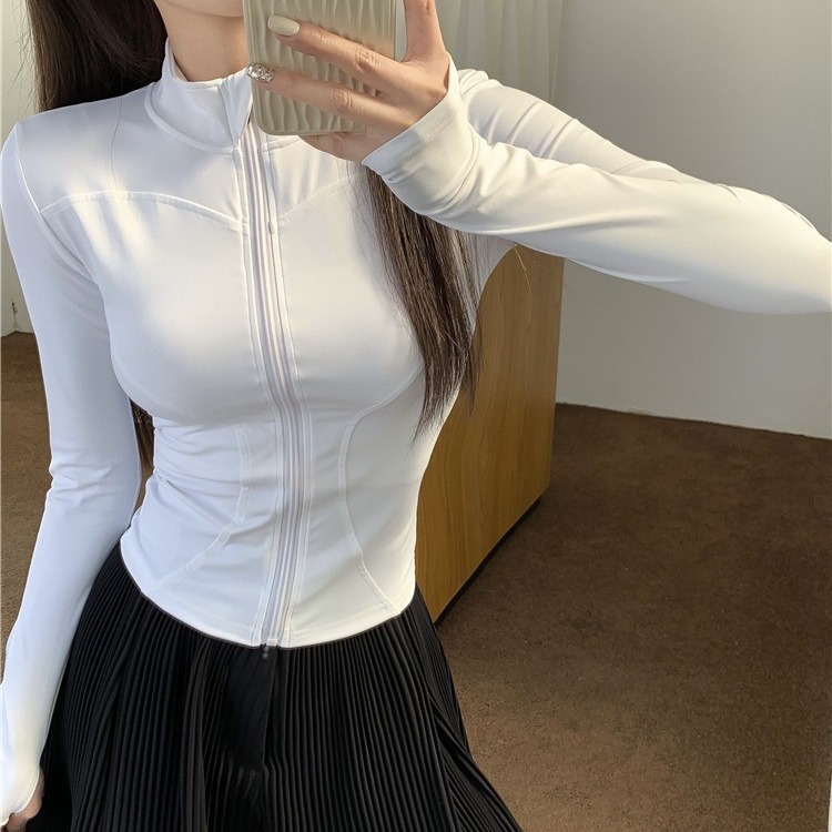 Lulu夏の日焼け止めヨガのスポーツコートの女性のタイトな速乾の立襟の長袖の上着のネットの赤いランニングのフィットネスの服
