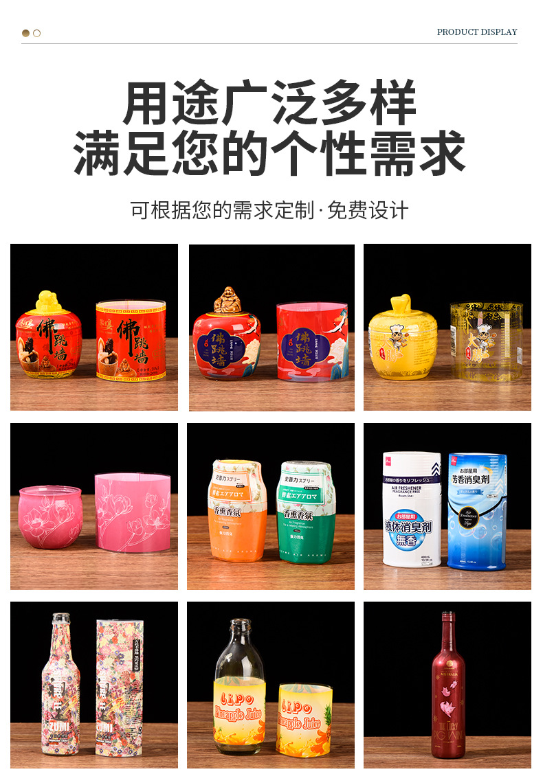 Pvc熱収縮フィルムカスタム飲料酒瓶缶シールラベルフィルムpet食品包装フィルムカスタムロゴ