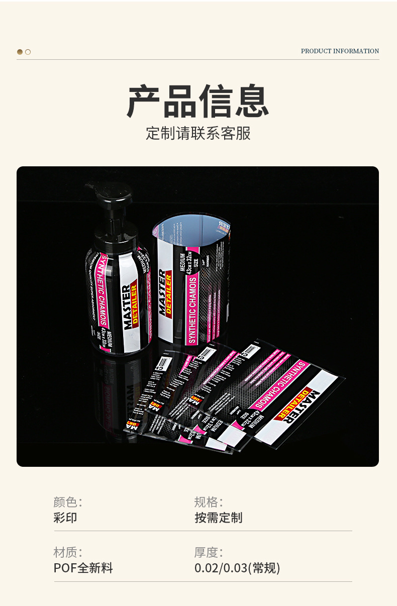 PVC透明シュリンクフィルムカスタム飲料ボトルプラスチックラベルロールPET透明ラベルステッカー清掃用品熱収縮