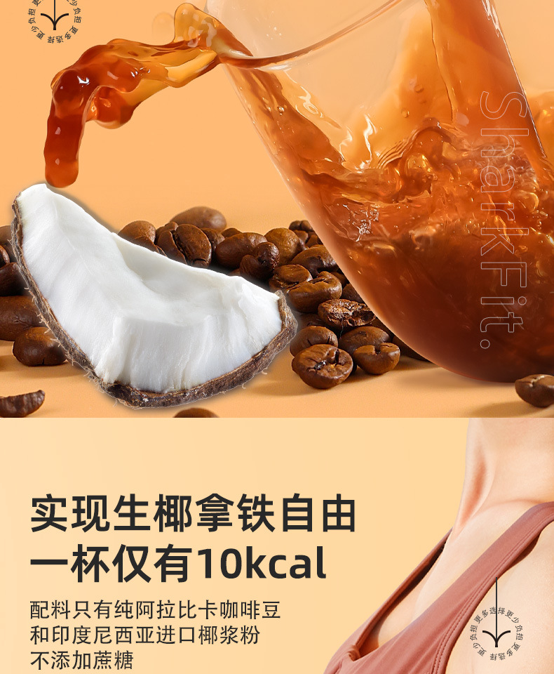 Shark Fit 卸売サッカリンフリーのホットおよびコールドダブルバブルスポーツフィットネス燃焼満腹インスタント厚い生ココナッツバーブラックコーヒー