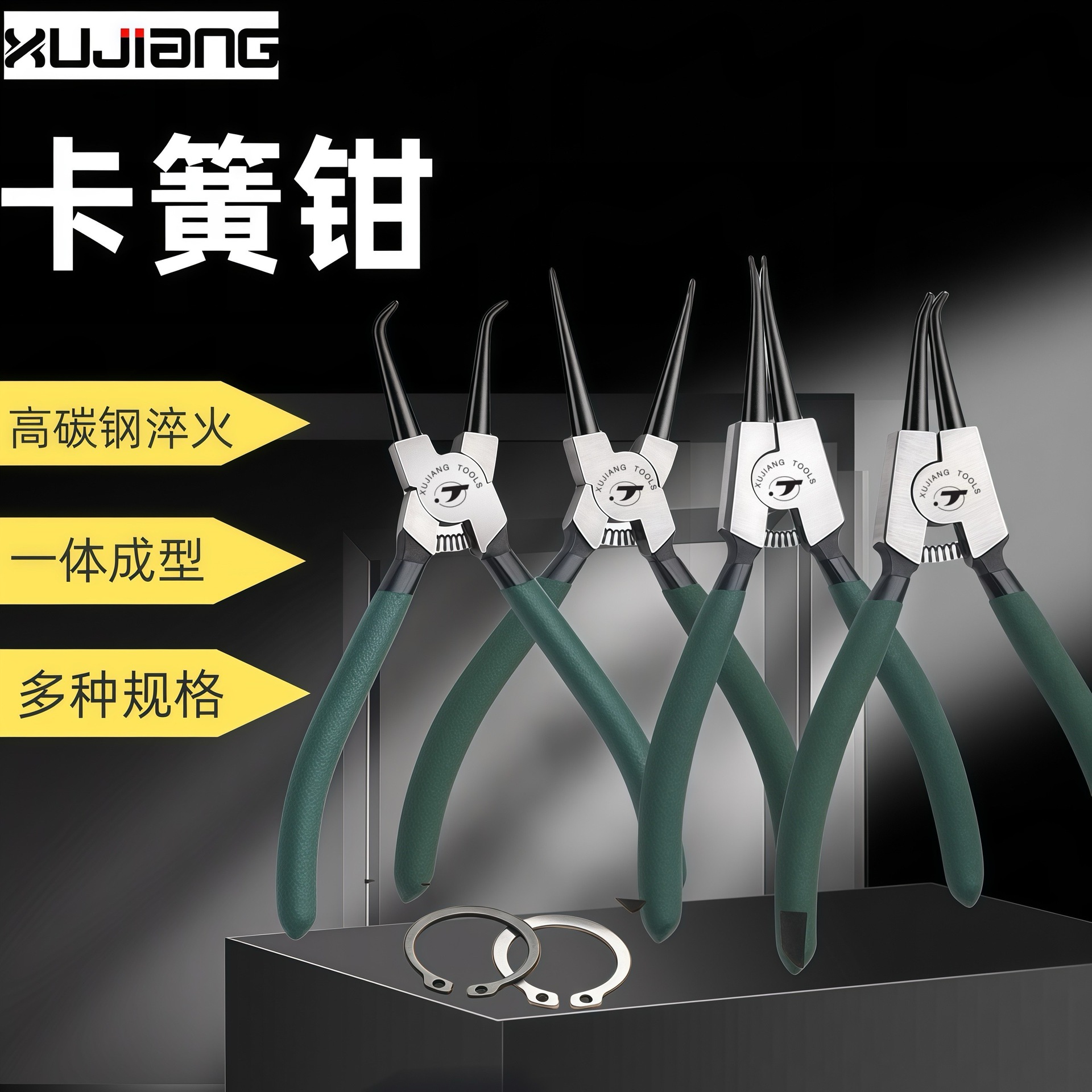 源头厂家批发7寸卡簧钳四件套内弯外弯内直外直挡圈钳手动卡簧钳