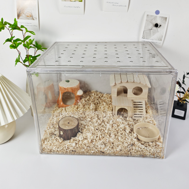 ハムスターケージアクリル全透明かじり防止脱獄防止豪華別荘超大空間巨大号飼育ケージ