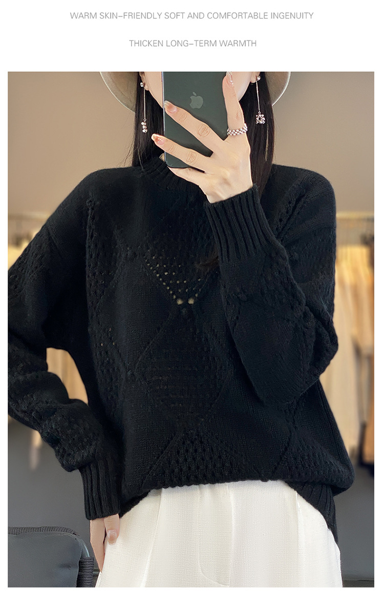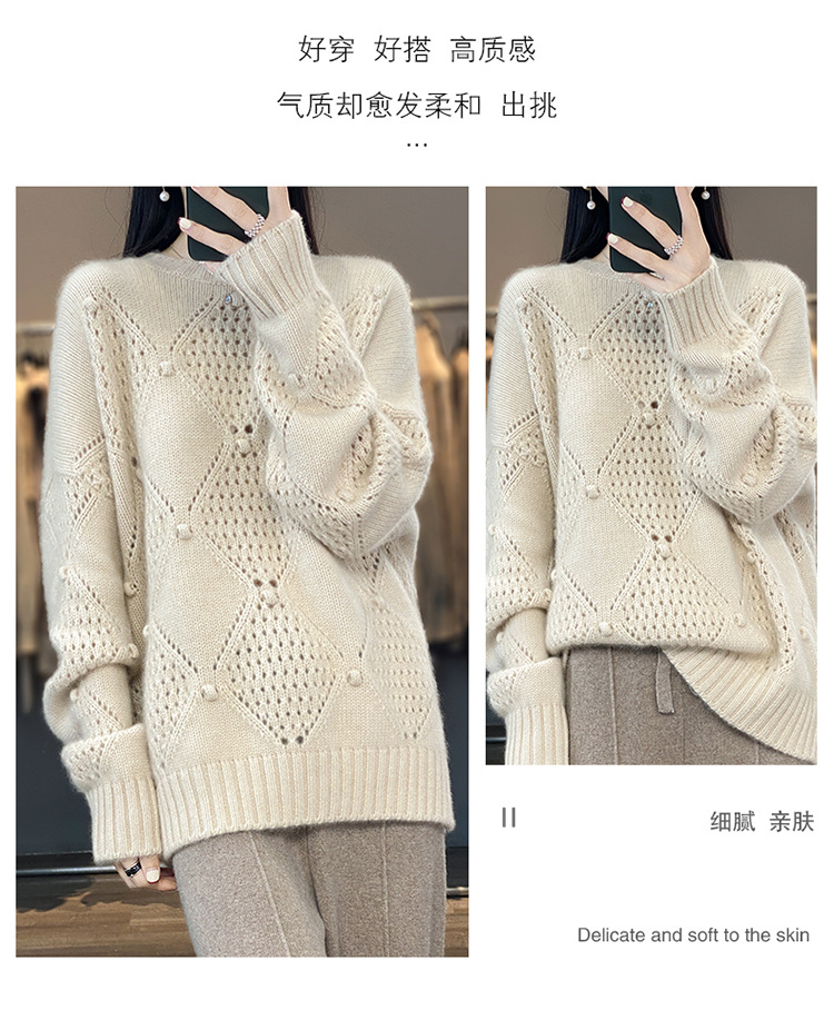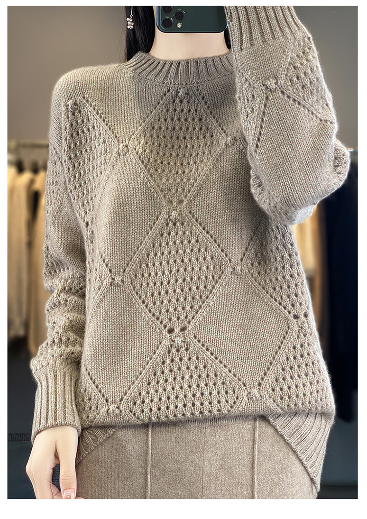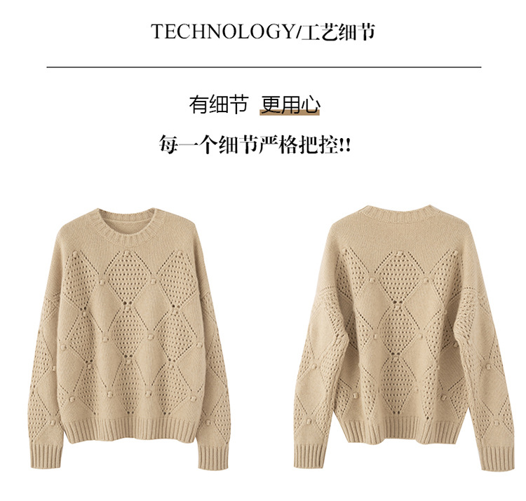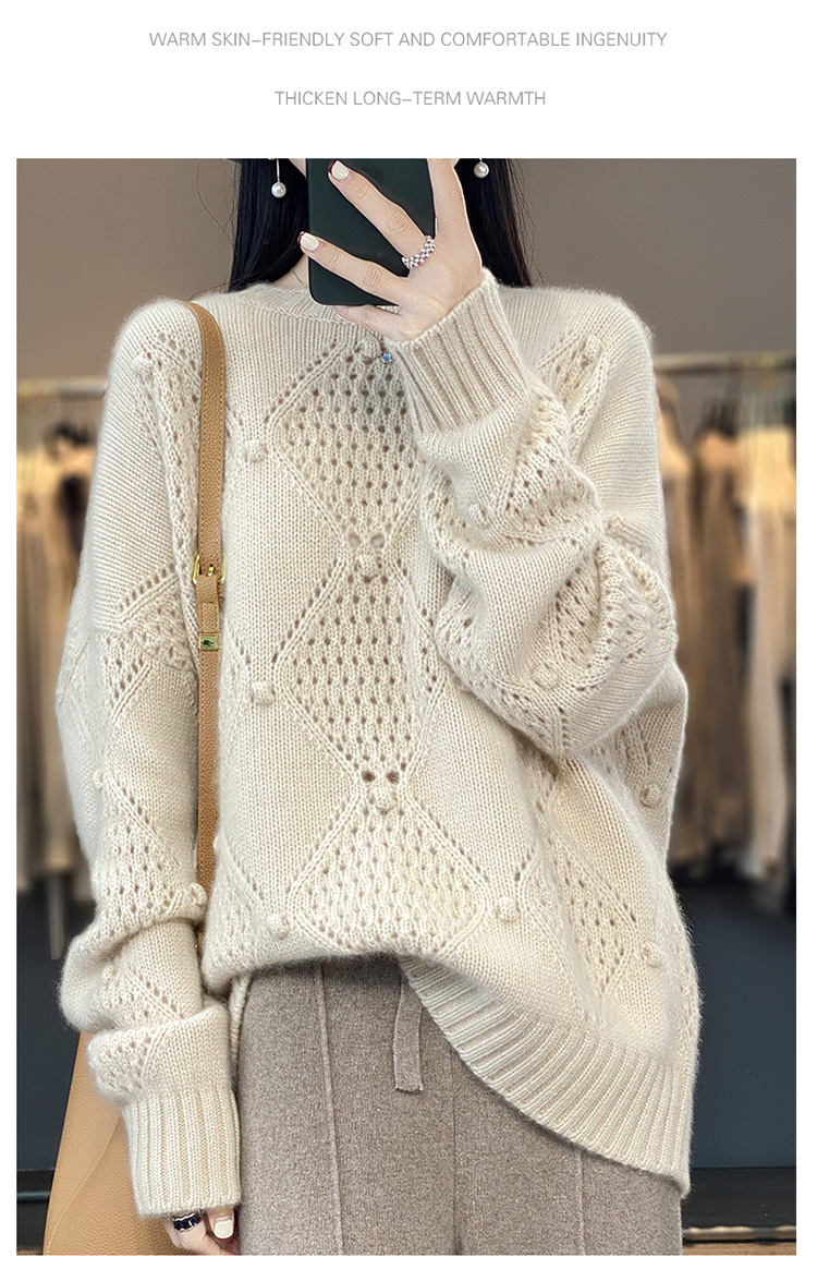 ヨーロッパ駅の新型の重工豆のウールのシャツの女性の丸首のダイヤモンドの透かし彫りのゆったりしている怠惰な風は厚いセーターを編みます。