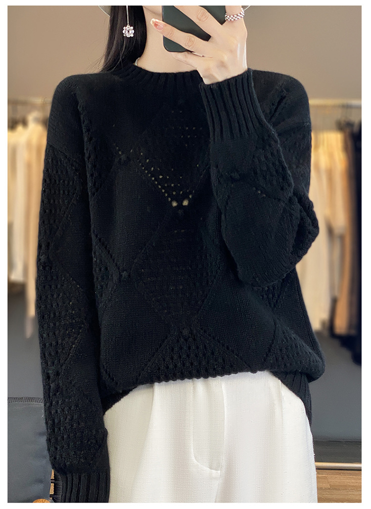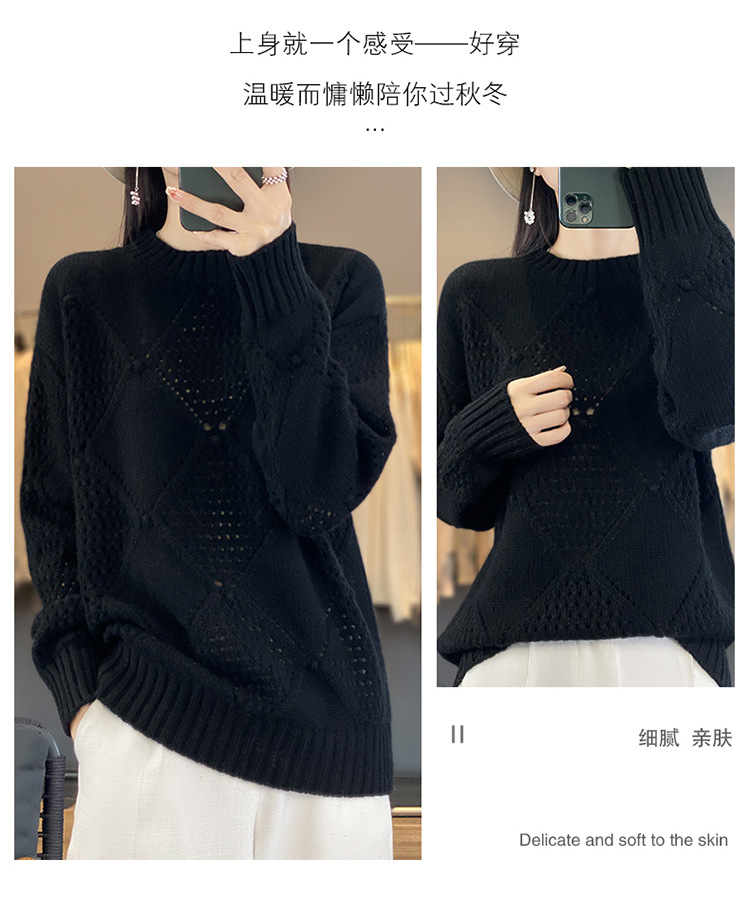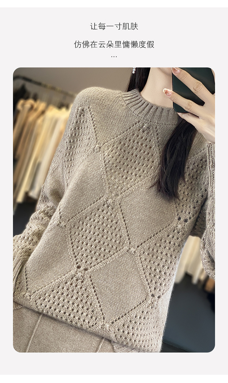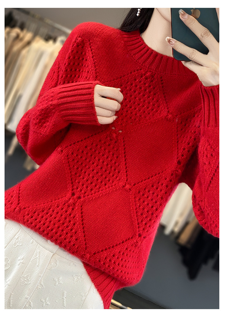 ヨーロッパ駅の新型の重工豆のウールのシャツの女性の丸首のダイヤモンドの透かし彫りのゆったりしている怠惰な風は厚いセーターを編みます。