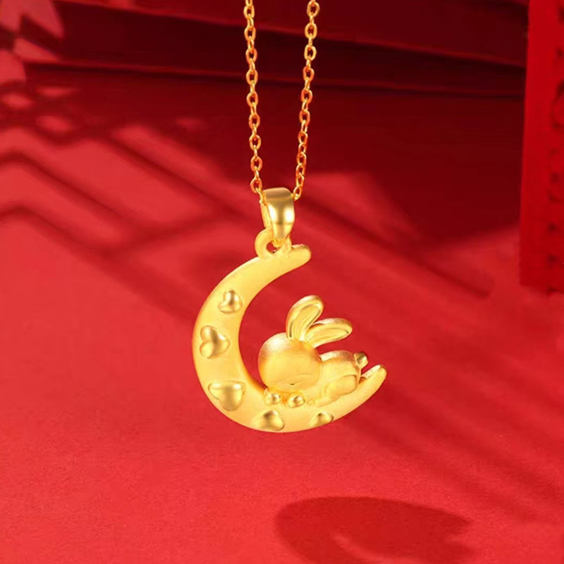 ベトナム沙金伴月兎ペンダント中国風震え音生肖兎結婚慶オリジナルデザイン工場卸売り生肖