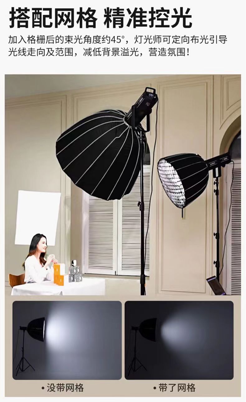 90cm深口放物線ソフトボックス BaoRong バヨネット深口ソフトボックス グリル付き ライブブロードキャストフィルライトシェード