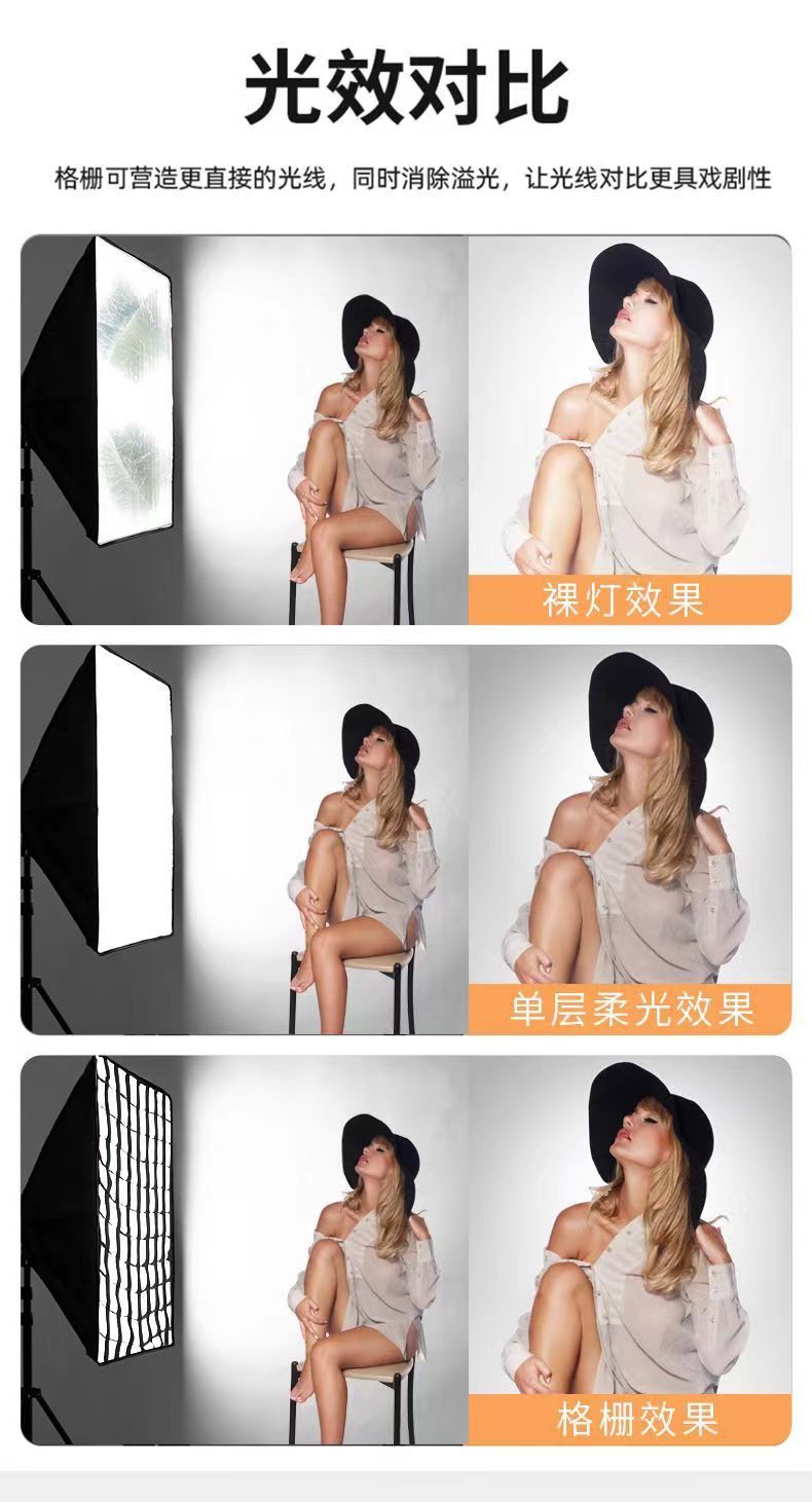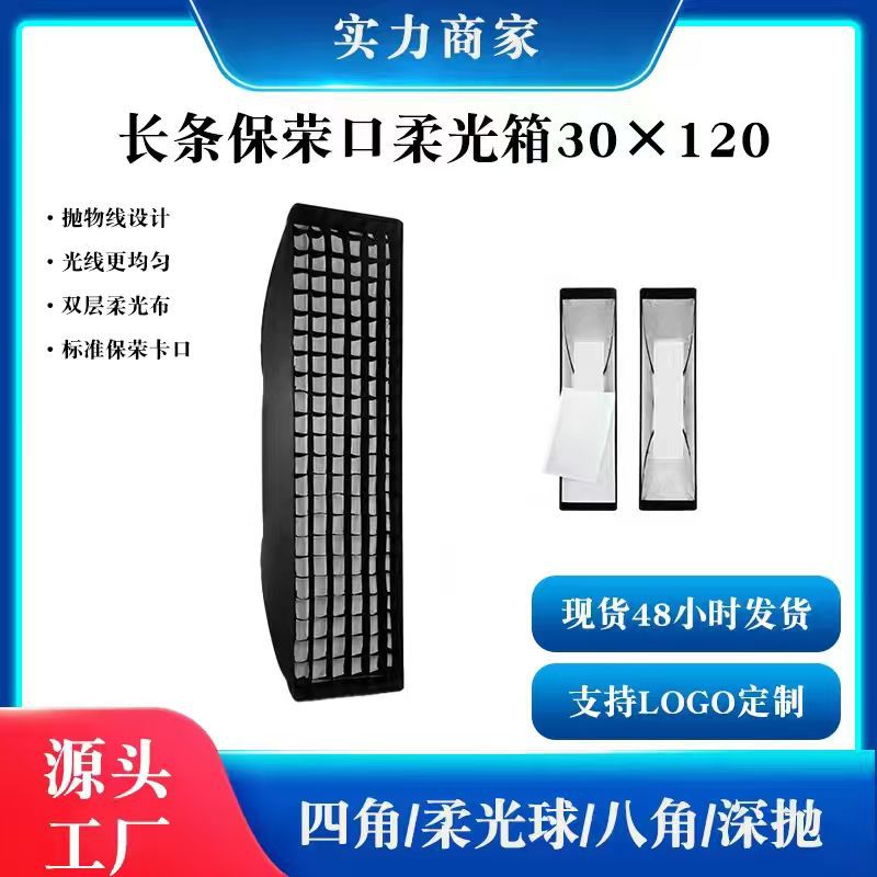 工厂直发30*120长条网格柔光箱 摄影棚直播补光灯荣保卡口柔光箱