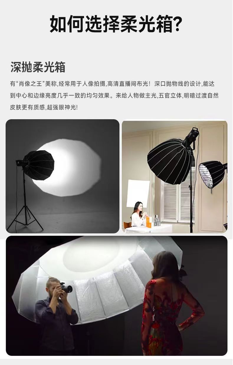 保荣カーボンボックス65cm柔光球四角形八角形長方形深口放物線撮影ライトライブ配信用