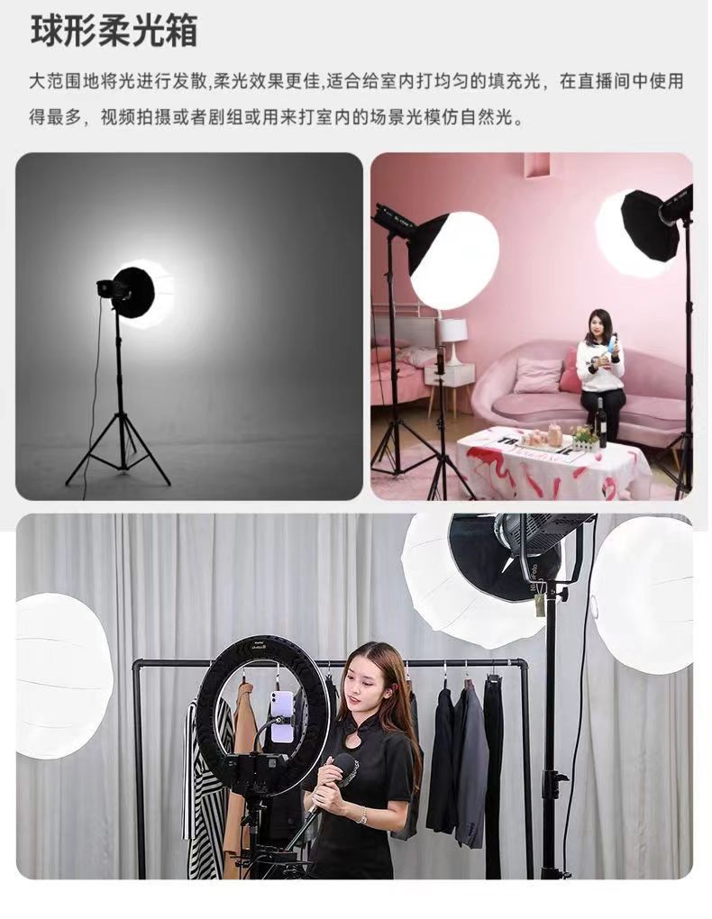 摄影柔光球柔光箱球形柔光罩直播补光灯球型灯罩摄影棚的灯具套装