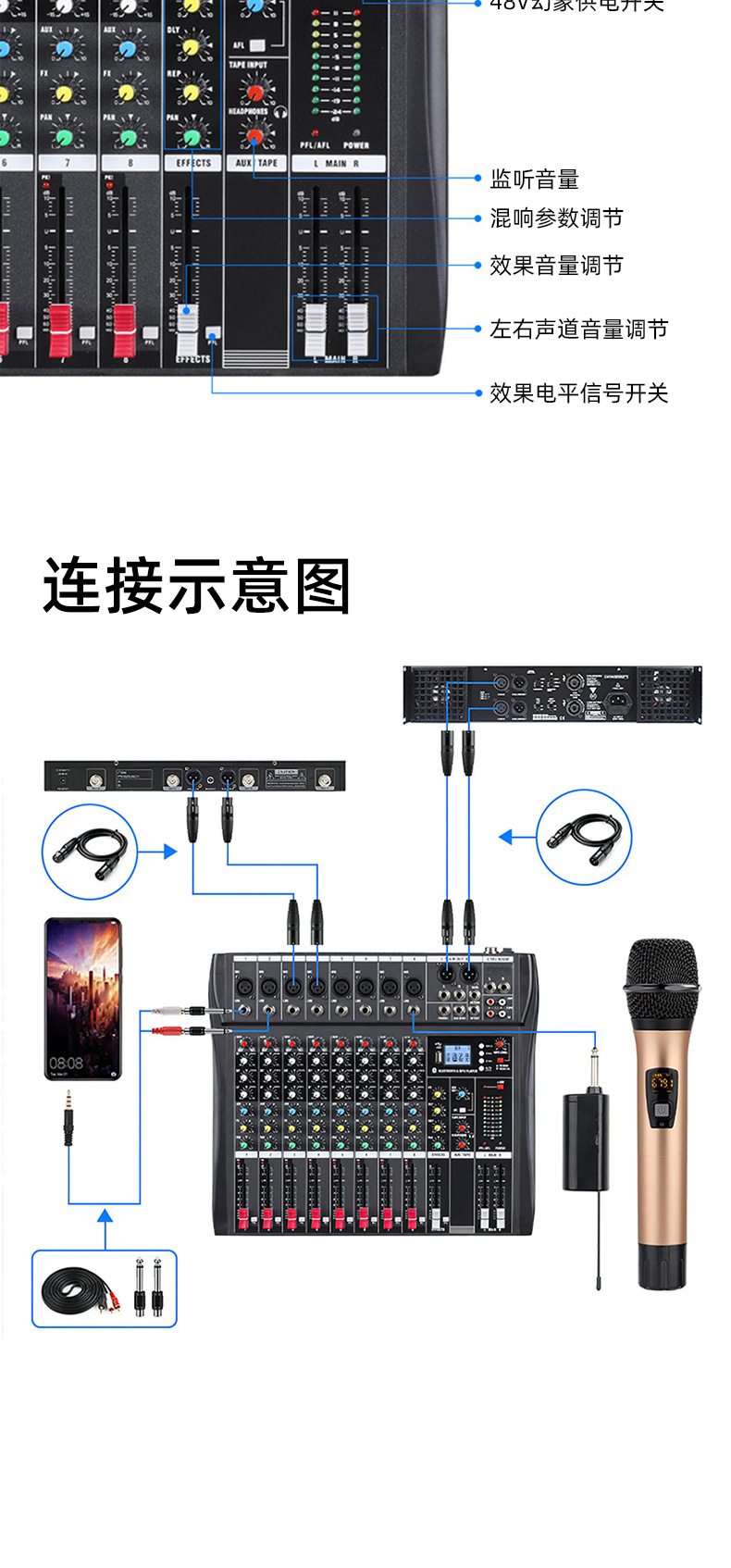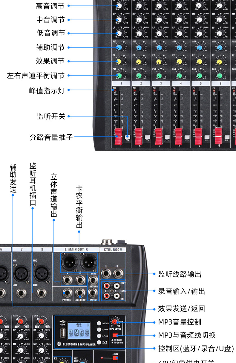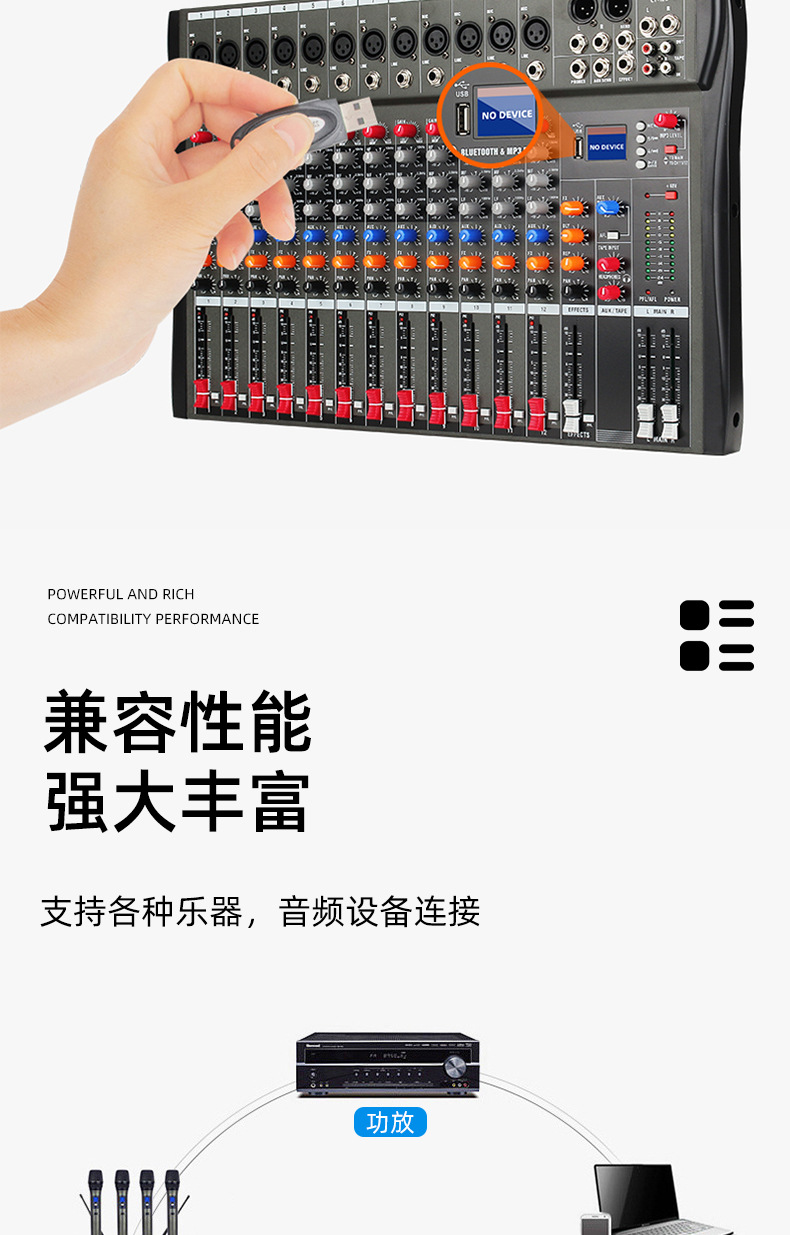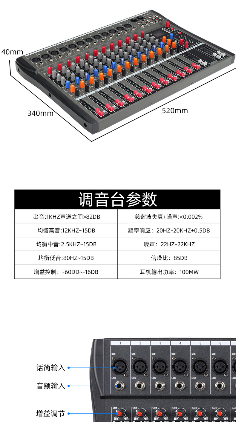 クロスボーダー専用調律台4/6/8/12路ブルートゥースバー付き舞台家庭用小型音響デジタルミキサー