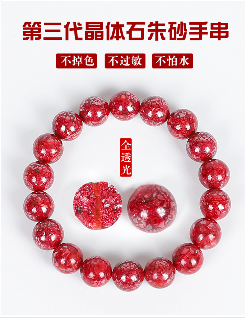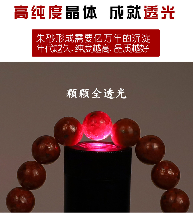 万山原産地朱砂結晶ブレスレット高純度原鉱結晶高透光手串男女本命年アクセサリー