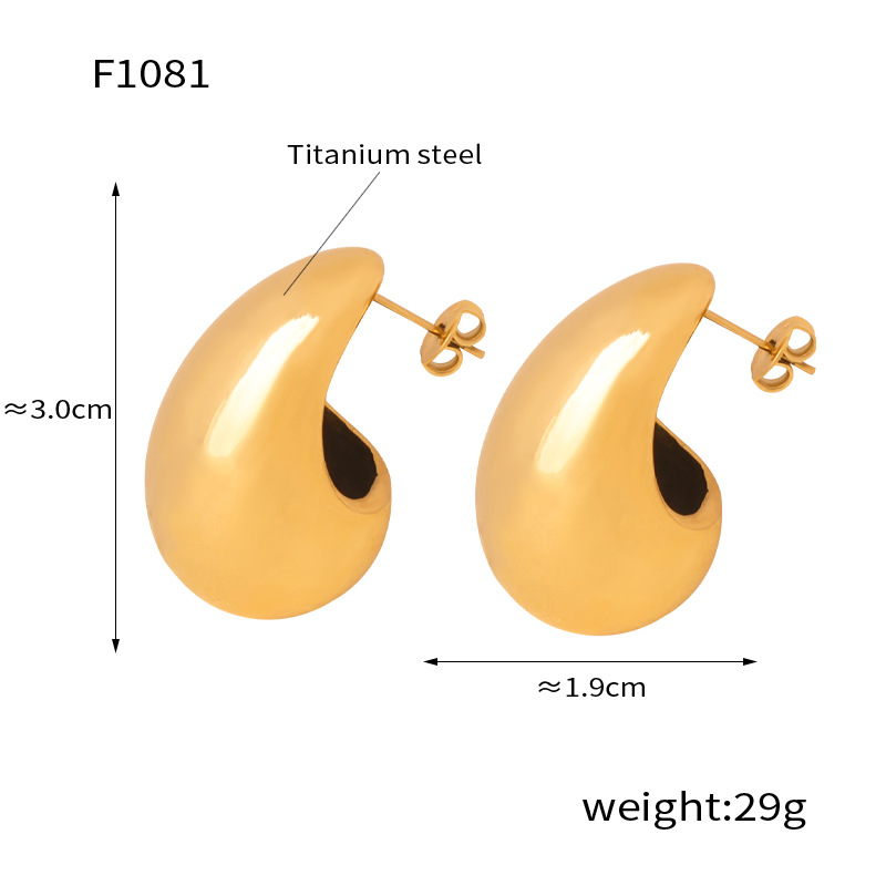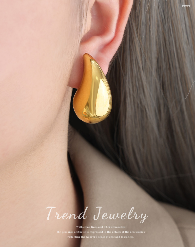 ファッション通勤シンプルな個性的な小さな幾何学的な光面水滴造形シンボルデザイン感チタン鋼金メッキイヤリング
