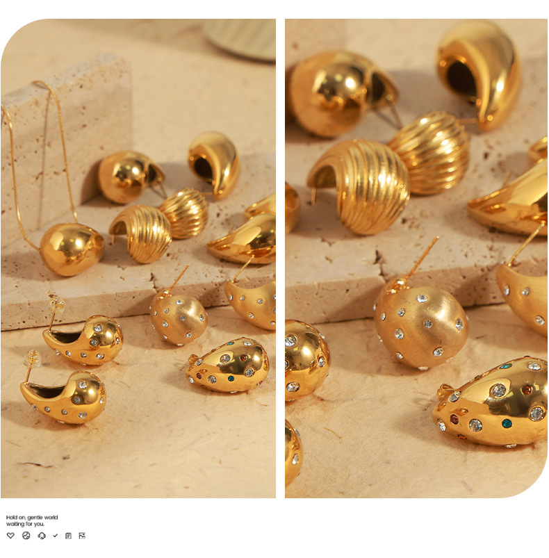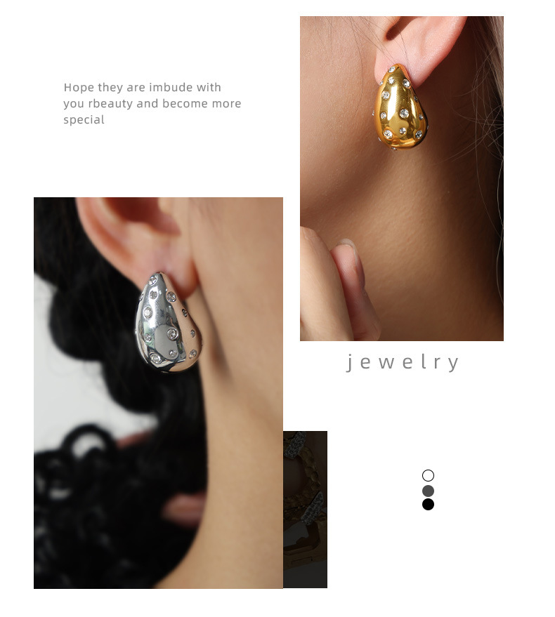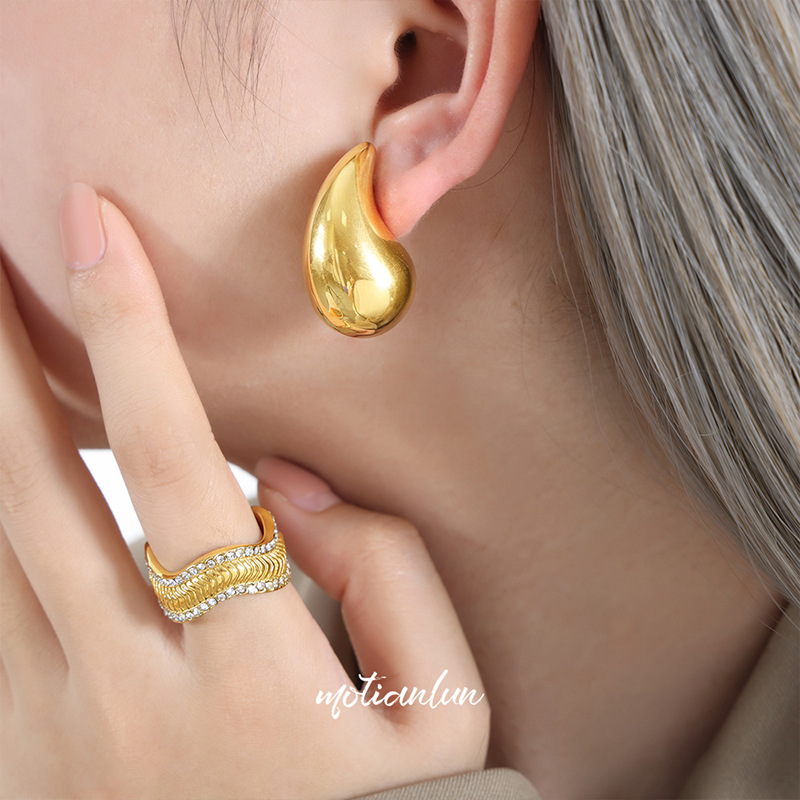 英倫風小衆ヴィンテージアクセサリー個性幾何学水滴造形モザイクデザイン感チタン鋼金メッキイヤリング