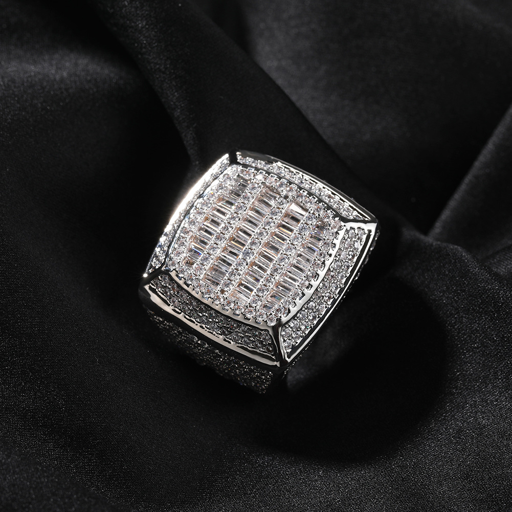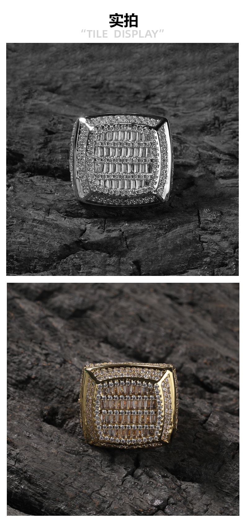 新型ヒップホップ混入T方白ジルコニウム方戒男性大衆個性指輪アクセサリー欧米クロスボーダーメーカー直送