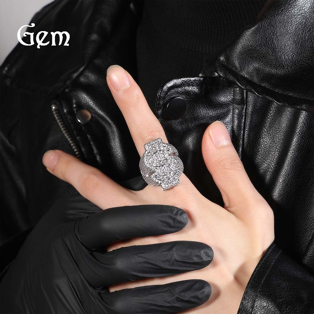 欧米のクロスボーダーの人気ヒップホップのドルの記号はドリルの指輪の大衆の設計の男性のリングのアクセサリの卸売りを満たします。