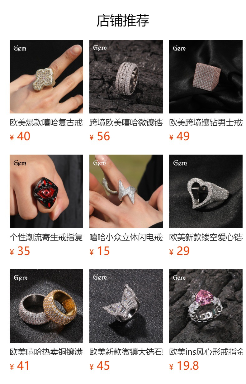 国境を越えた欧米の銅にジルコンを入れたヒップホップ風金色の指輪復古個性円形男性指輪卸売り義烏