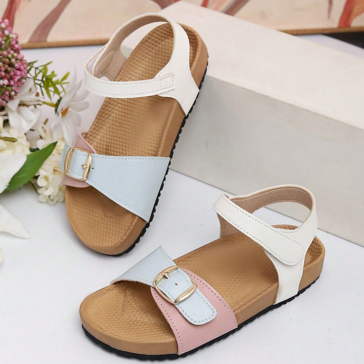 国境を越えた貿易子供用サンダルオープントゥカジュアルコントラストカラー平底ガールズビーチソフトソールサンダル