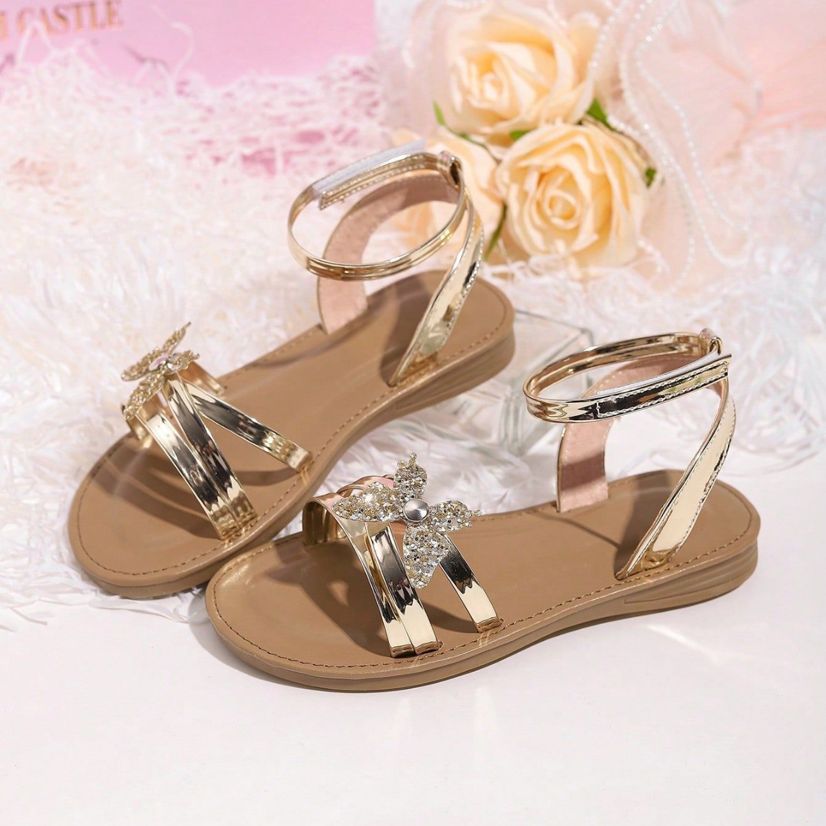 跨境外贸Children's sandals儿童蝴蝶结小女孩外穿平底露趾凉鞋