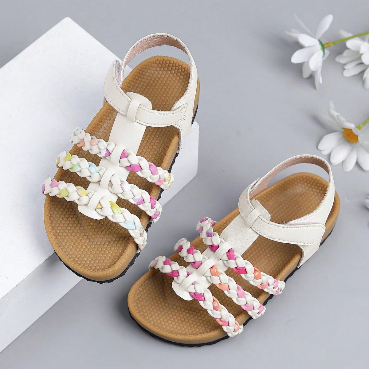 国境を越えた貿易子供用サンダル、女性用の西洋風織りオープントゥフラット子供用ビーチサンダル