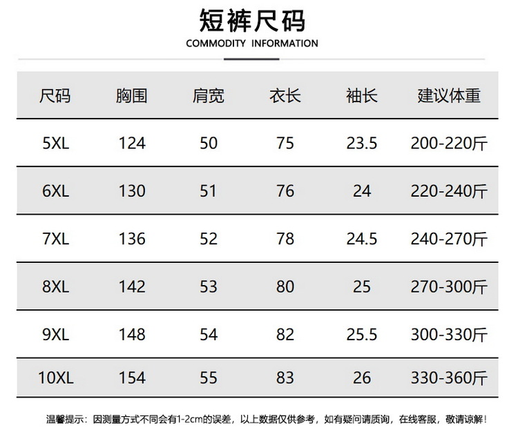 サイズ 5xlは200-220斤を提案します。,6xlは220 ~ 240斤を提案する,7xlは240 ~ 270斤を提案した,8xlは270 ~ 300斤を提案する,9xlは300-330斤を提案します。,10xlは330 ~ 360斤を提案する