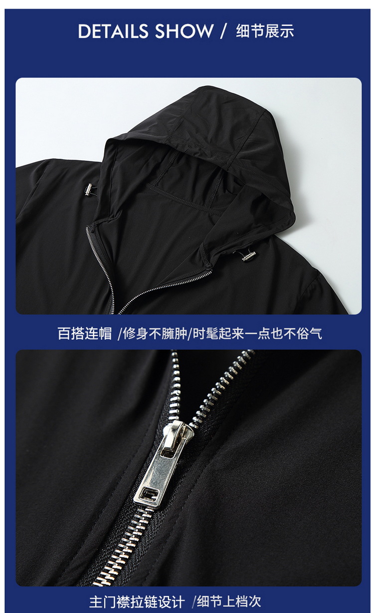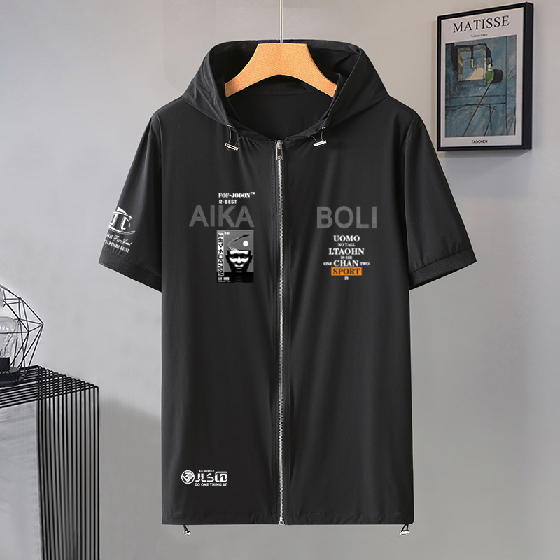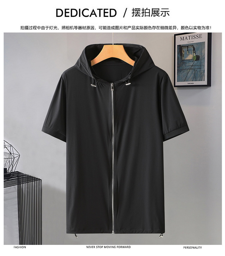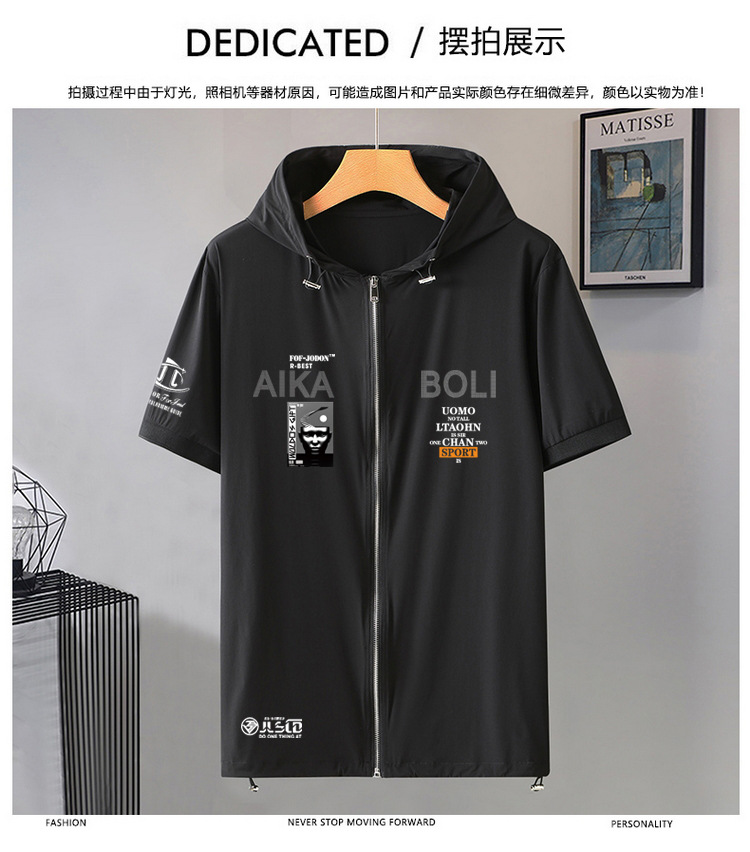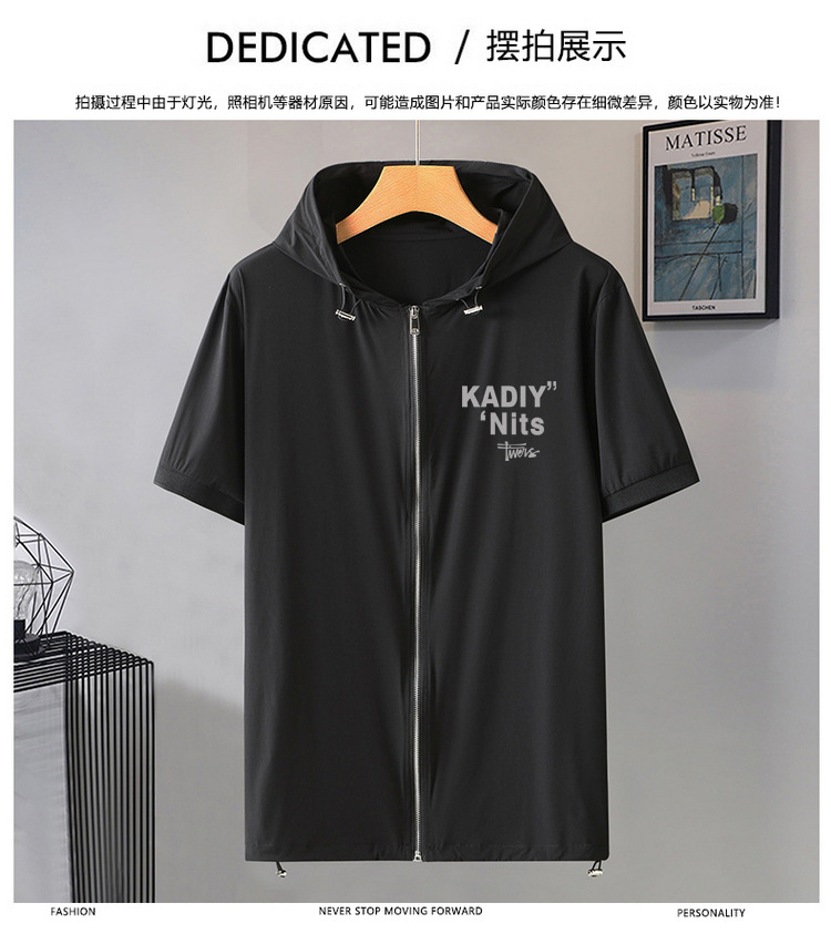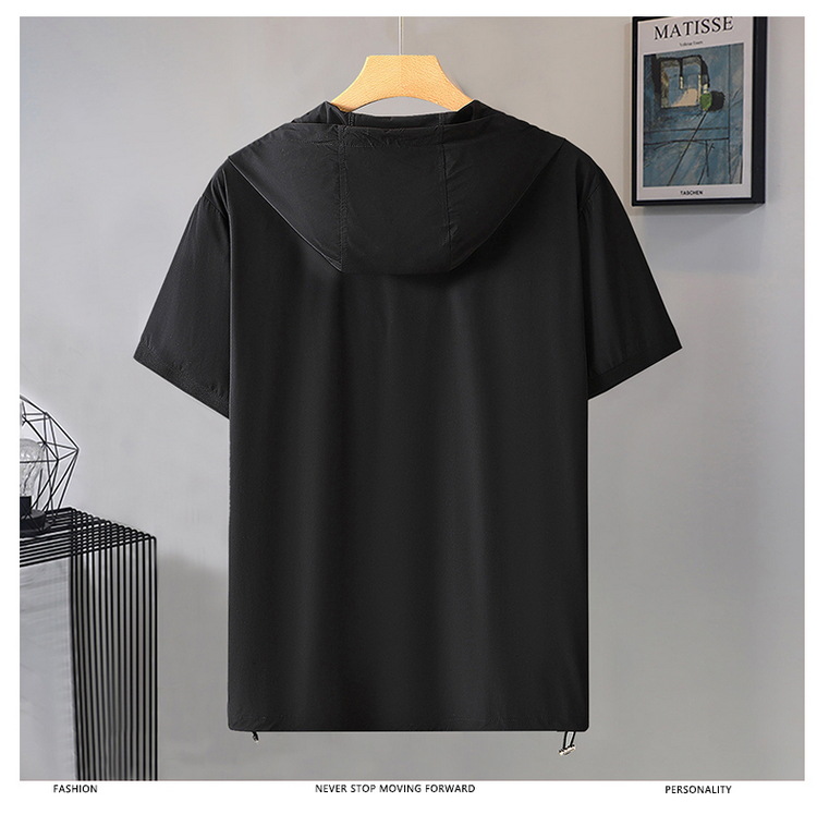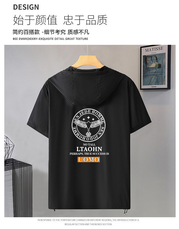 カラー 2076種類の帽子付きプリント半袖黒,2076種類のKADフード付き半袖黒,2076項純色フード付き半袖黒