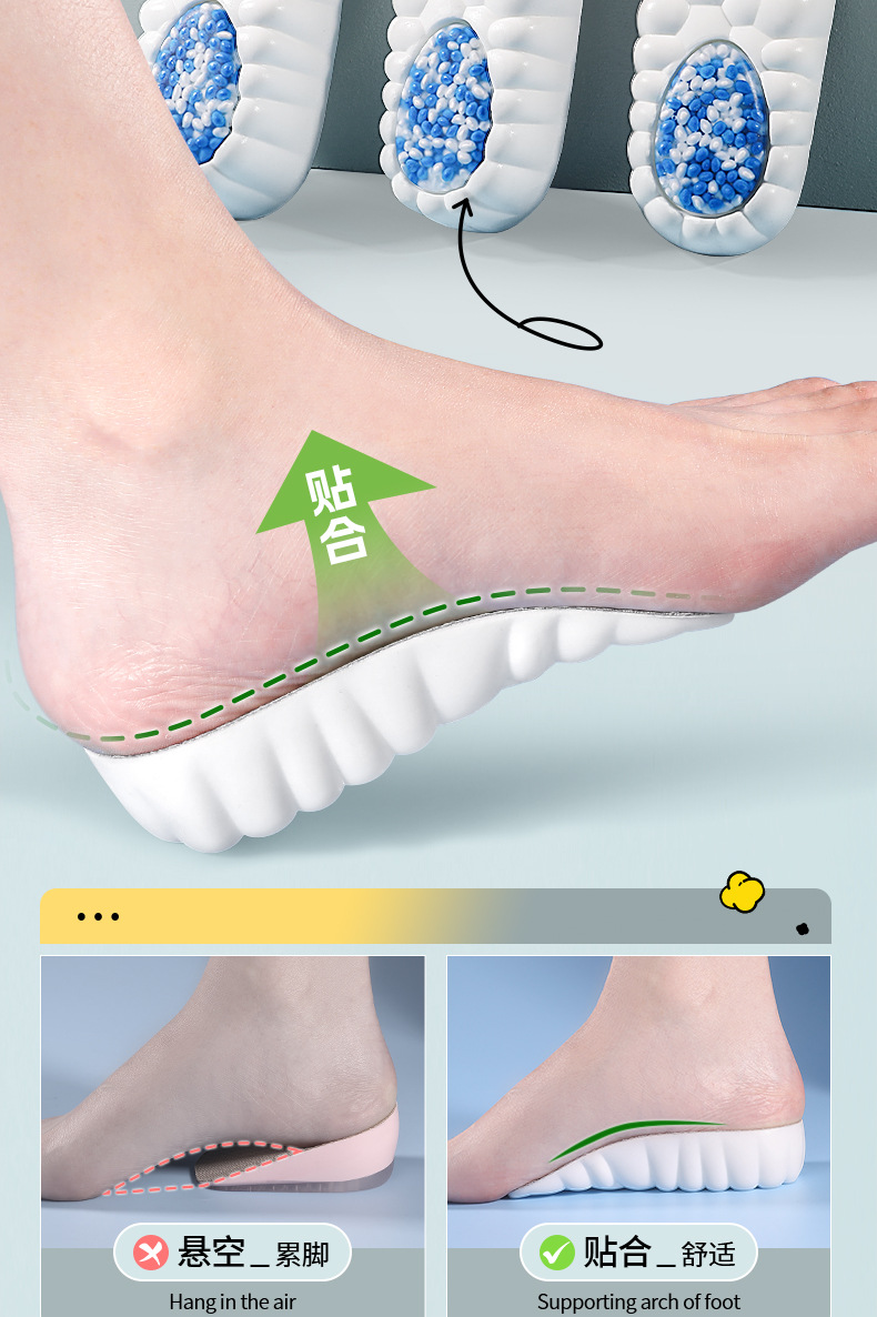 大粒のポップコーンの中敷きのシリカゲルの衝撃吸収運動は痛みを防ぎます。