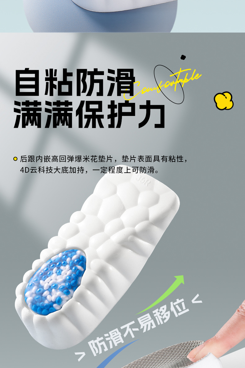 男女兼用消臭インナー高さ調整インソール、ソフトソール、快適、吸汗性、スポーツエアクッション、衝撃吸収、長時間立っても足が疲れにくい