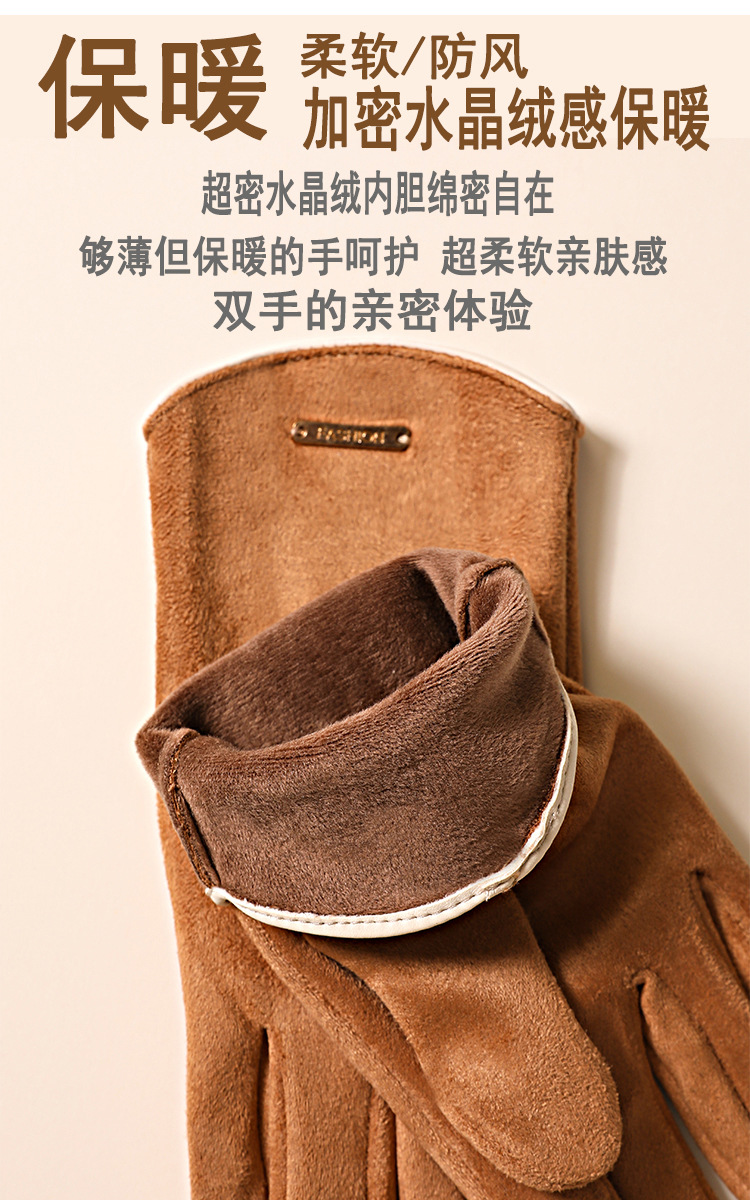スエードの手袋の女性の秋冬のベルベットの保温は指のタッチパネルのレジャーを漏らして車を運転して防風して屋外を防寒することができます。