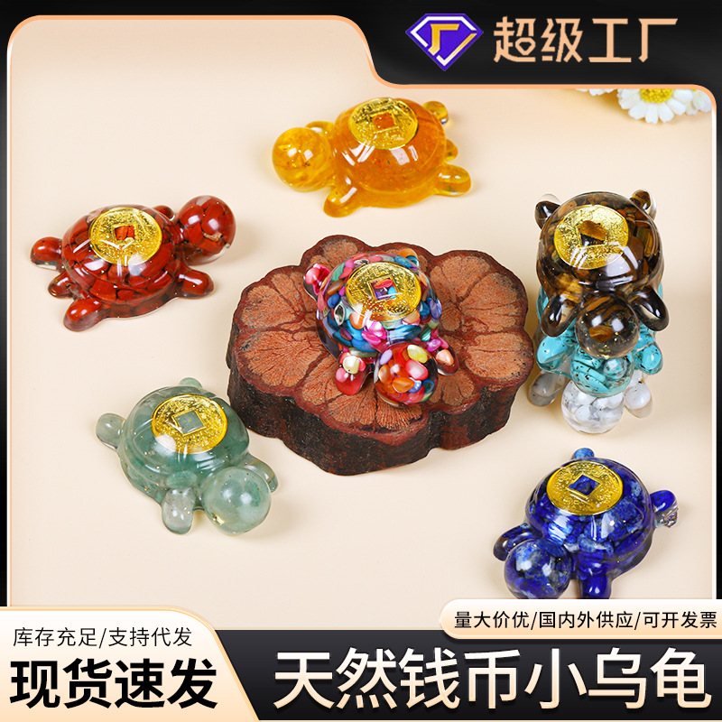 跨境天然水晶碎石滴胶树脂招财金钱龟树脂工艺品家居桌面摆件批发