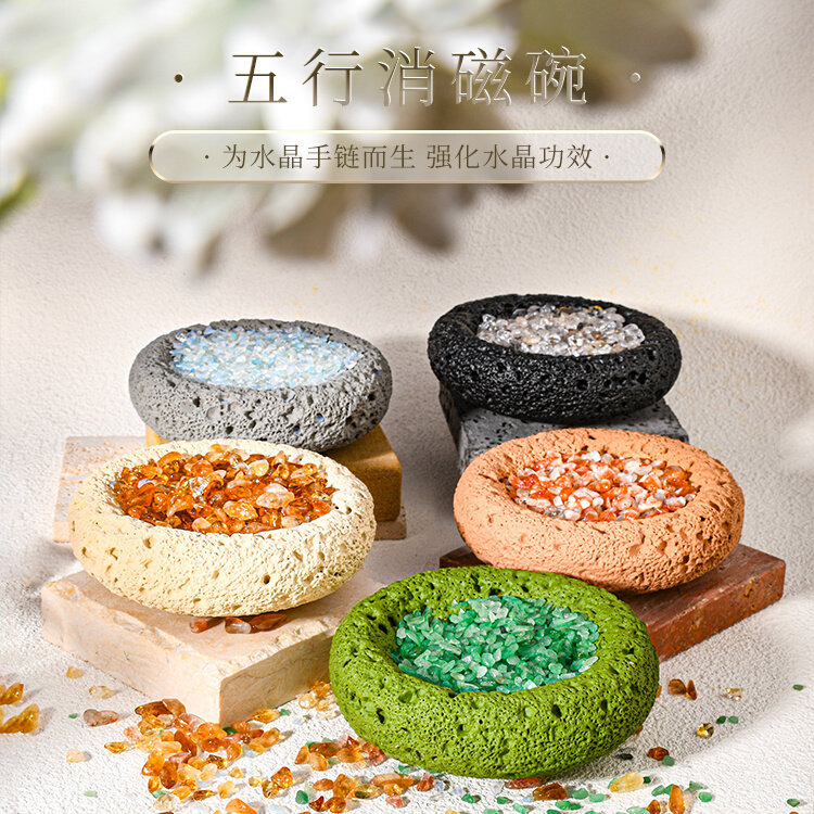 天然水晶碎石消磁石白水晶黄水晶碎石消磁碗消磁净化家居艺术摆件