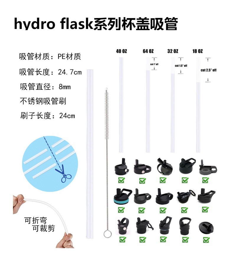 Hydro flask吸管尺寸长24.7cm,外径8mm,内径6mm(通用保温杯盖吸管)