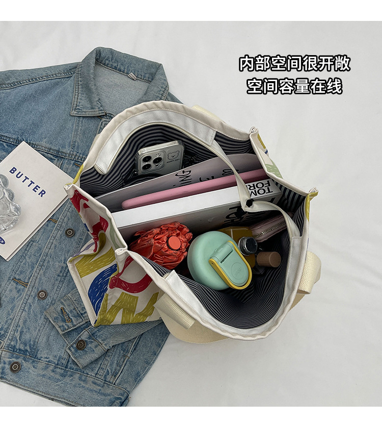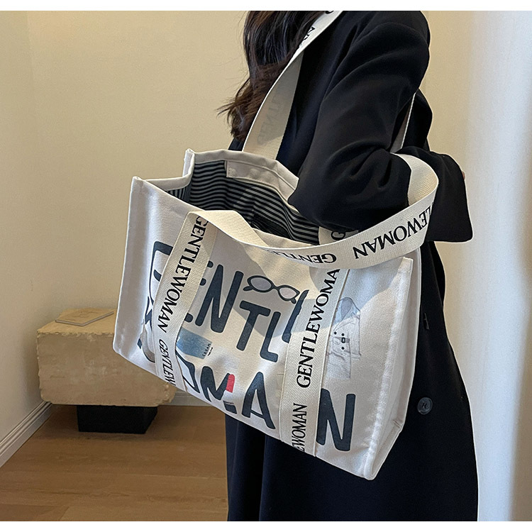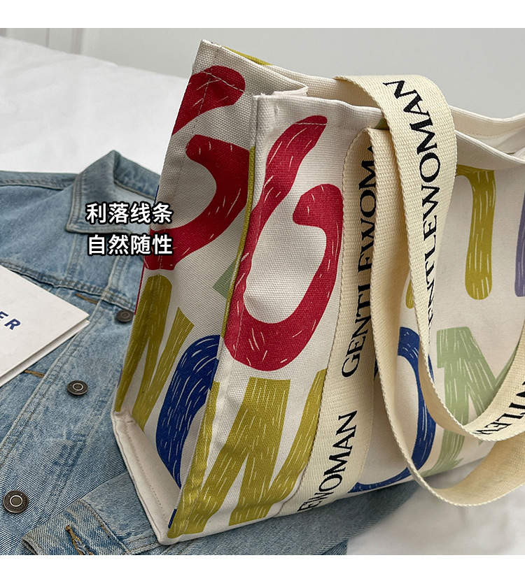 ファッションアルファベットプリントキャンバスバッグシンプルな文芸学生ショルダーバッグ大容量ショッピングバッグ