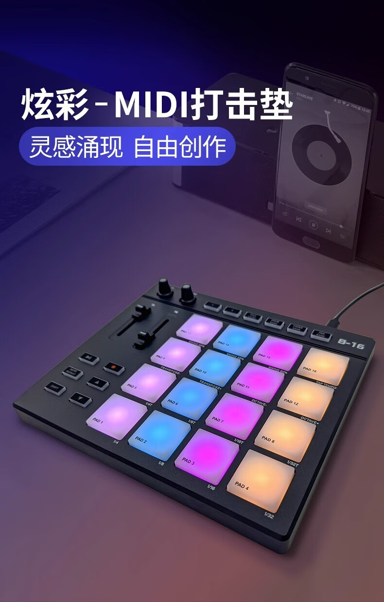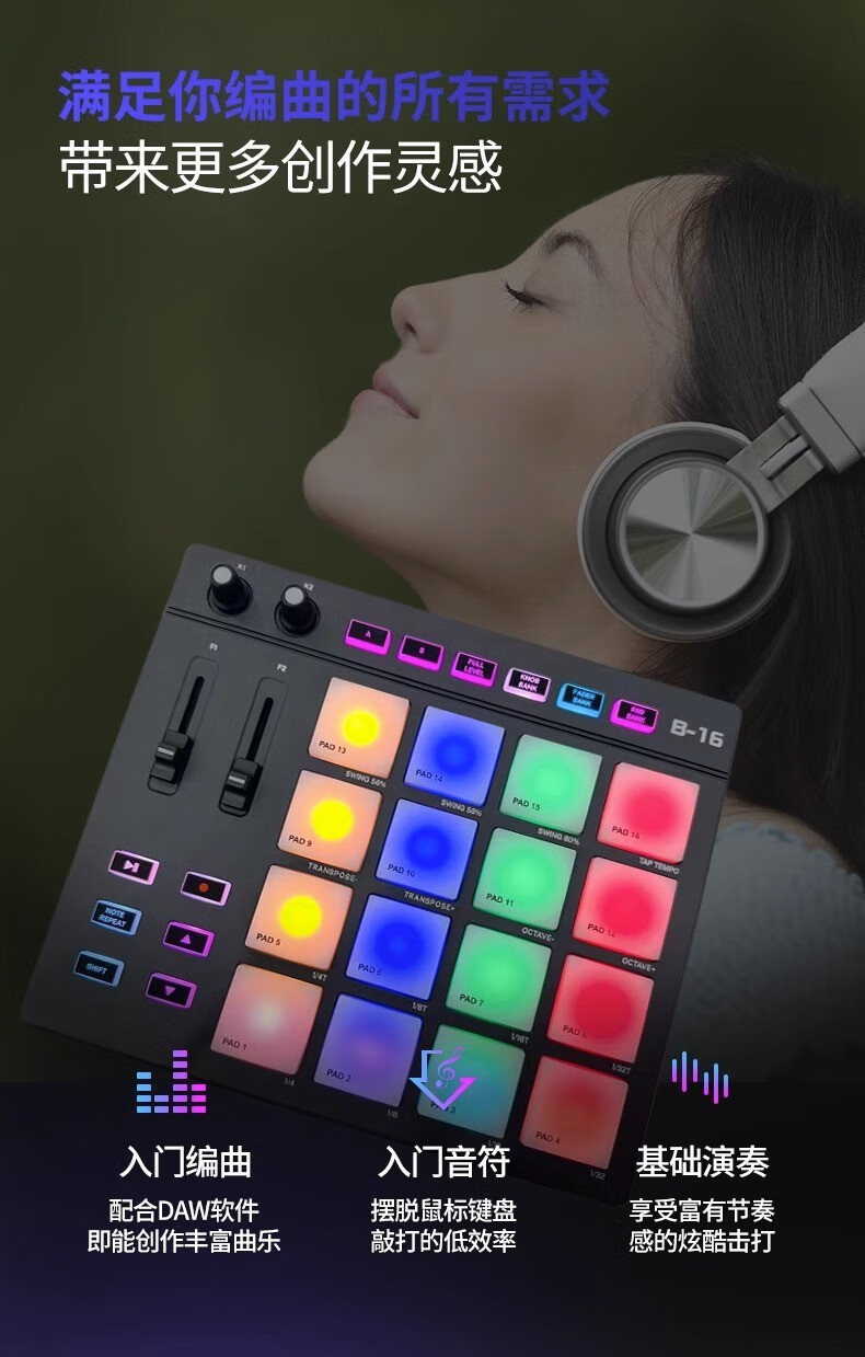 贝斯特电音小魔方MIDI打击垫便携式DJ音乐RGB编曲键盘控制器