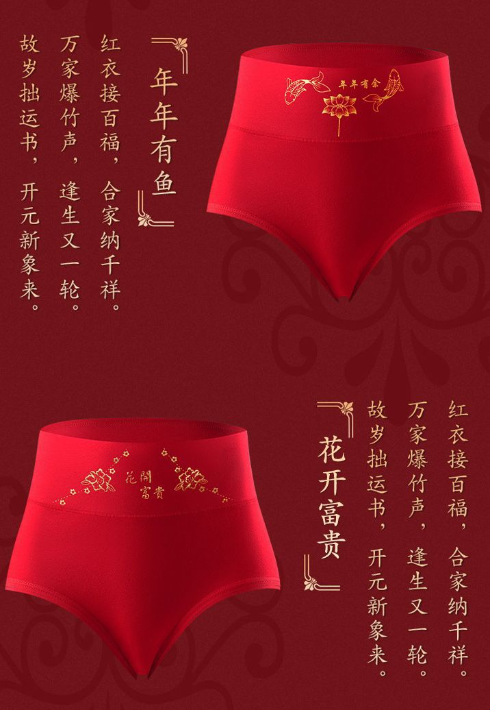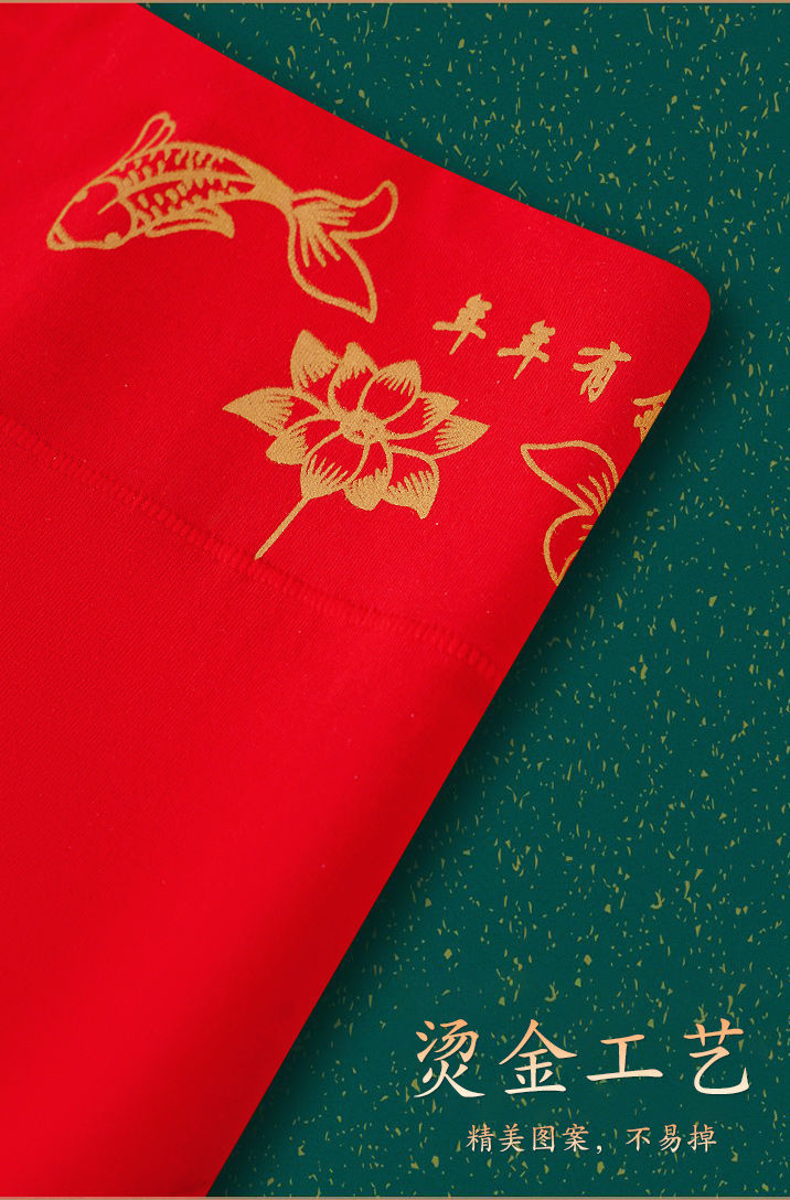 本命年大紅下着箔押しプリント大紅高腰下着お祝い大紅錦鯉プリント下着卸売り