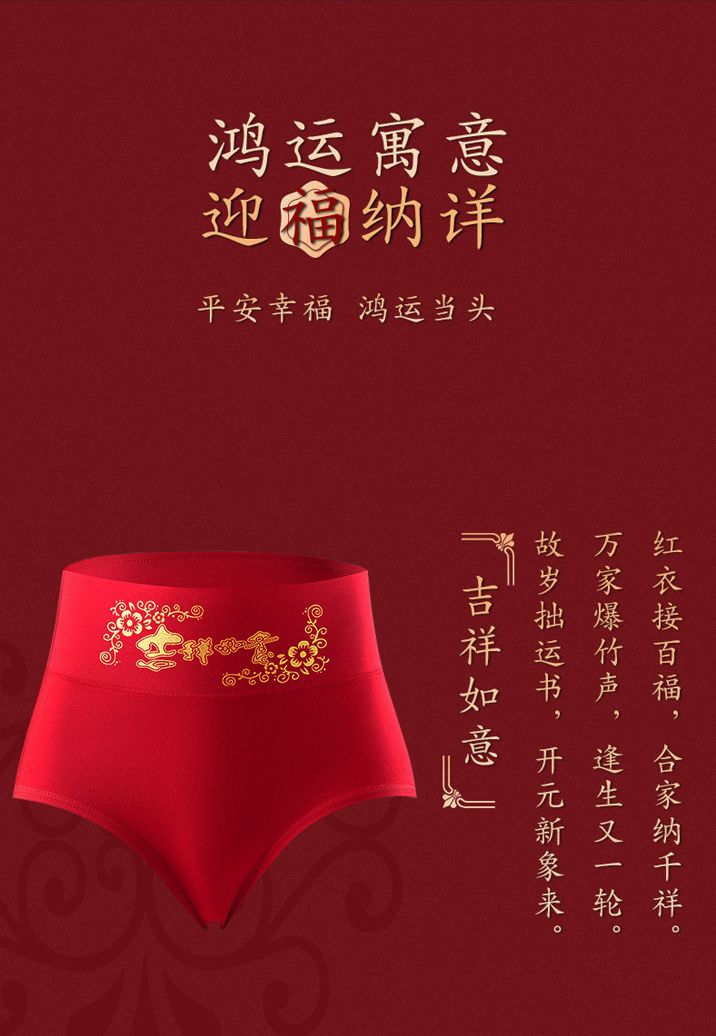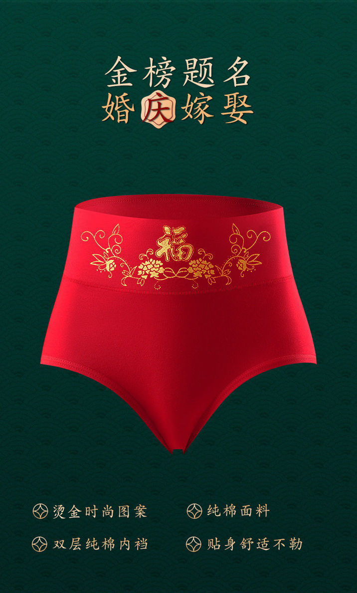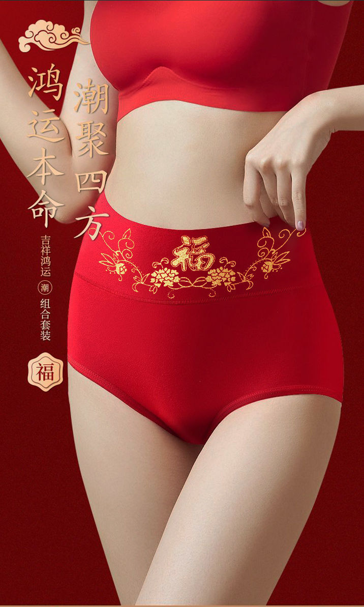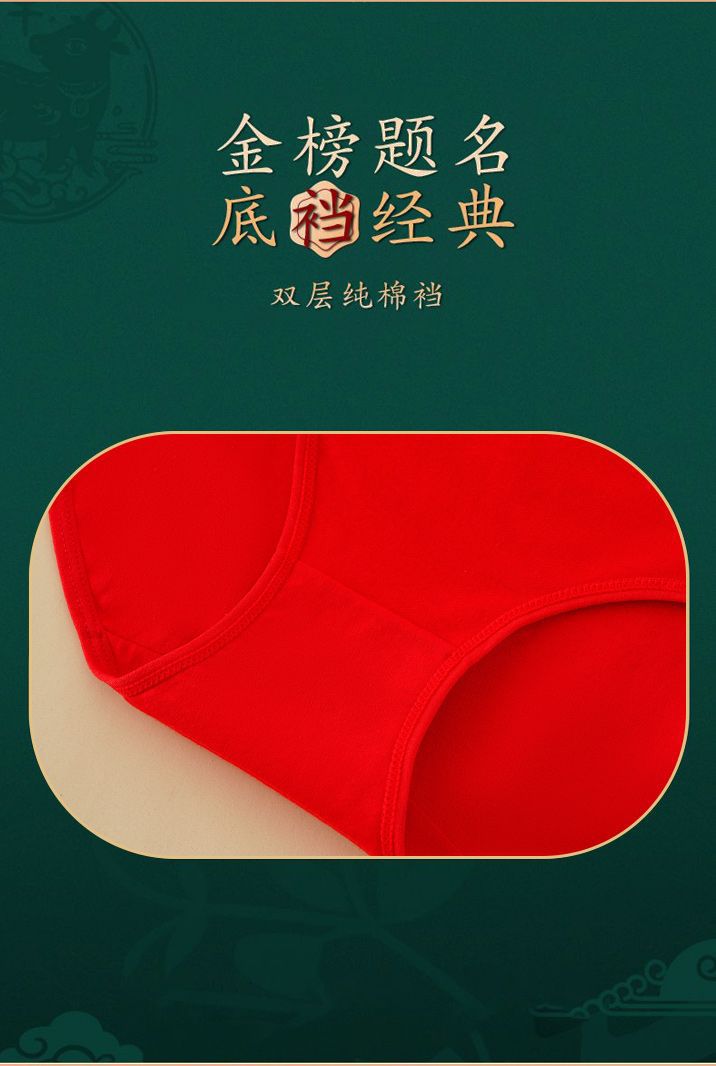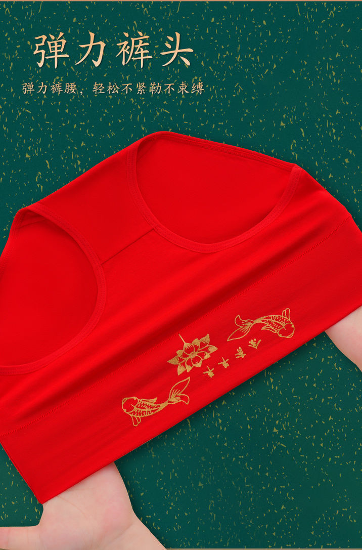 メーカー本命年大紅純綿下着箔押しプリント純綿中腰下着中腰おめでたい下着卸売り