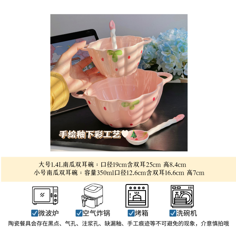 ガールフレンドカップルインスタントラーメンボウルカタツムリヌードルボウル双耳カボチャボウルINSスタイル釉下カラースープボウルデザートボウル
