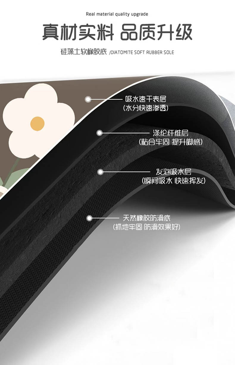 家庭用トイレの入り口の滑り止め速乾足マット浴室マット柔らかい珪藻泥吸水マット