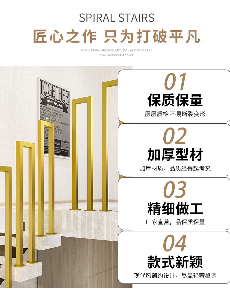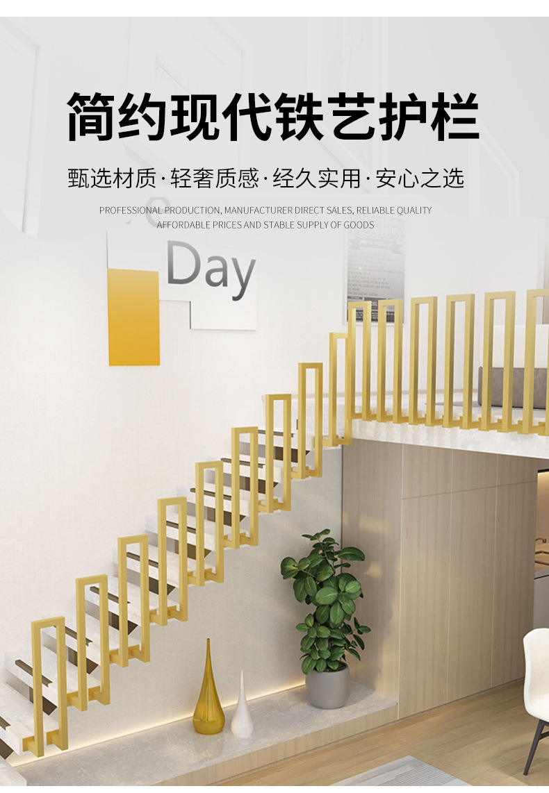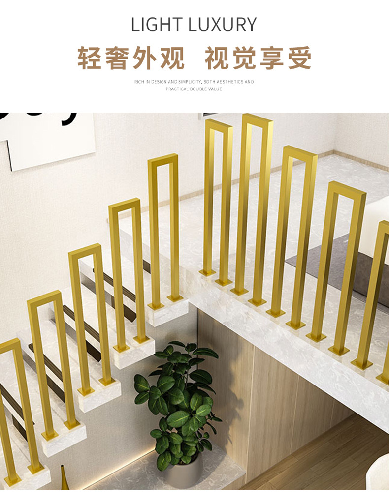 新しい人気階段鉄製手すりガードレール柱室内階段ガードレール金色柱階段手すり
