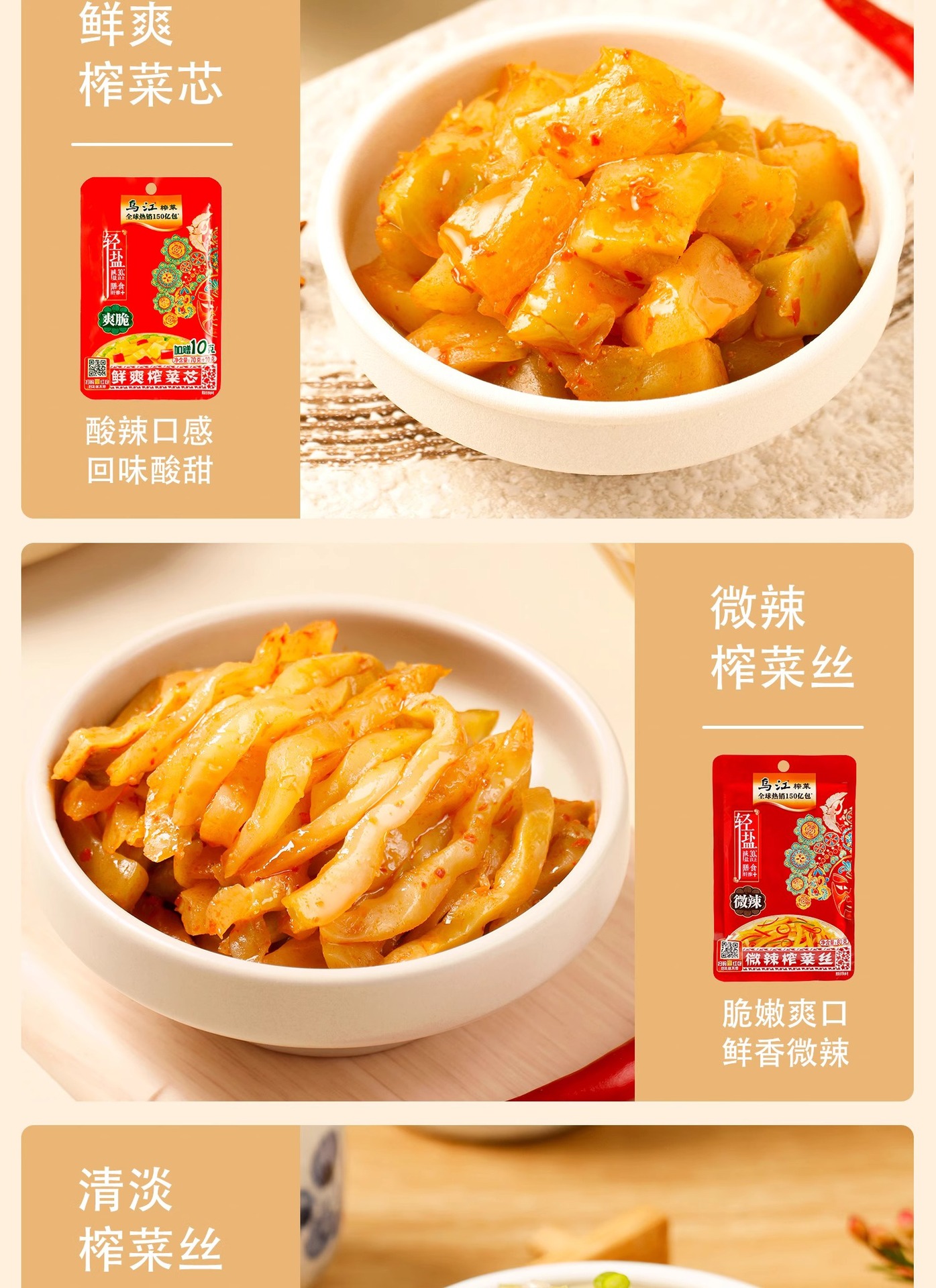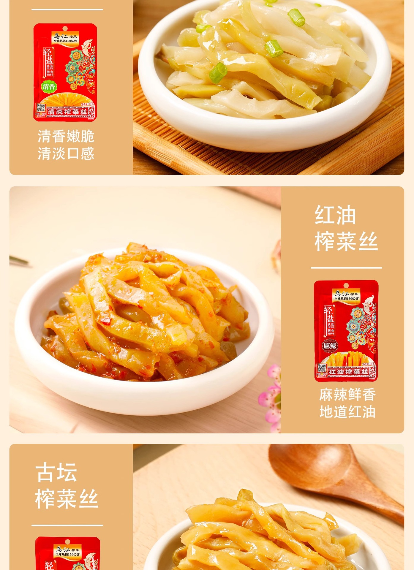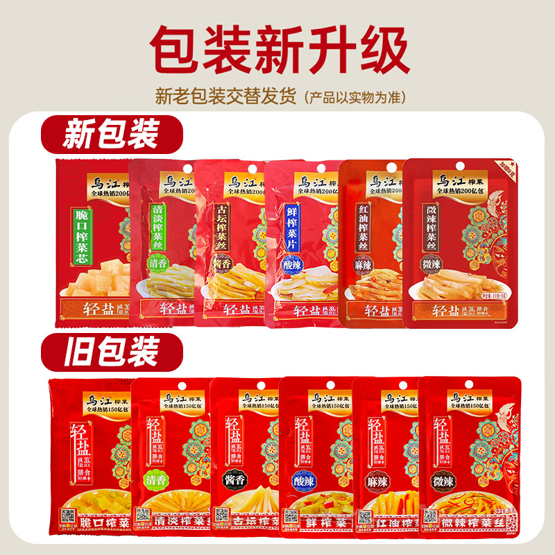 烏江漬物、本場涪陵産漬物、70g/80g袋入り、爽やかで少し辛い漬物の細切り、軽塩版、大箱卸売