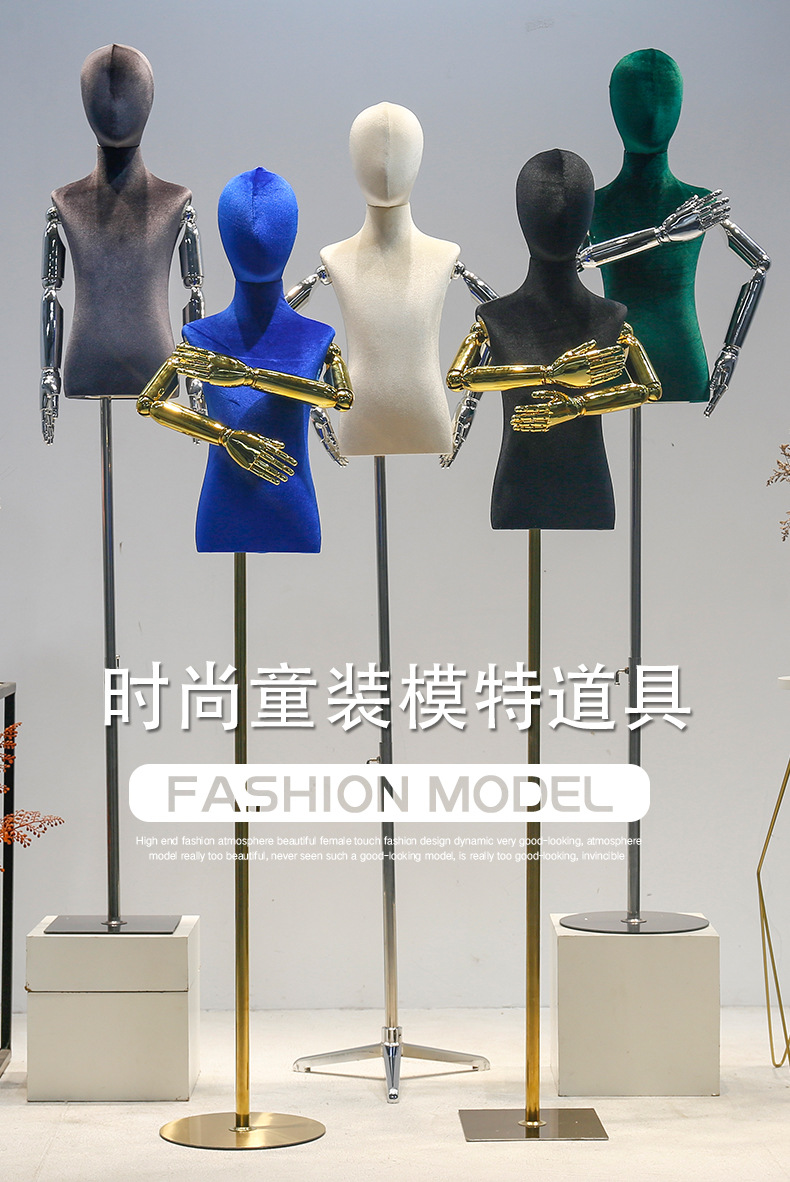 メッキ子供モデル洋服店ショーウインドー小道具ベルベット男女子供人形子供服モデル展示棚全身