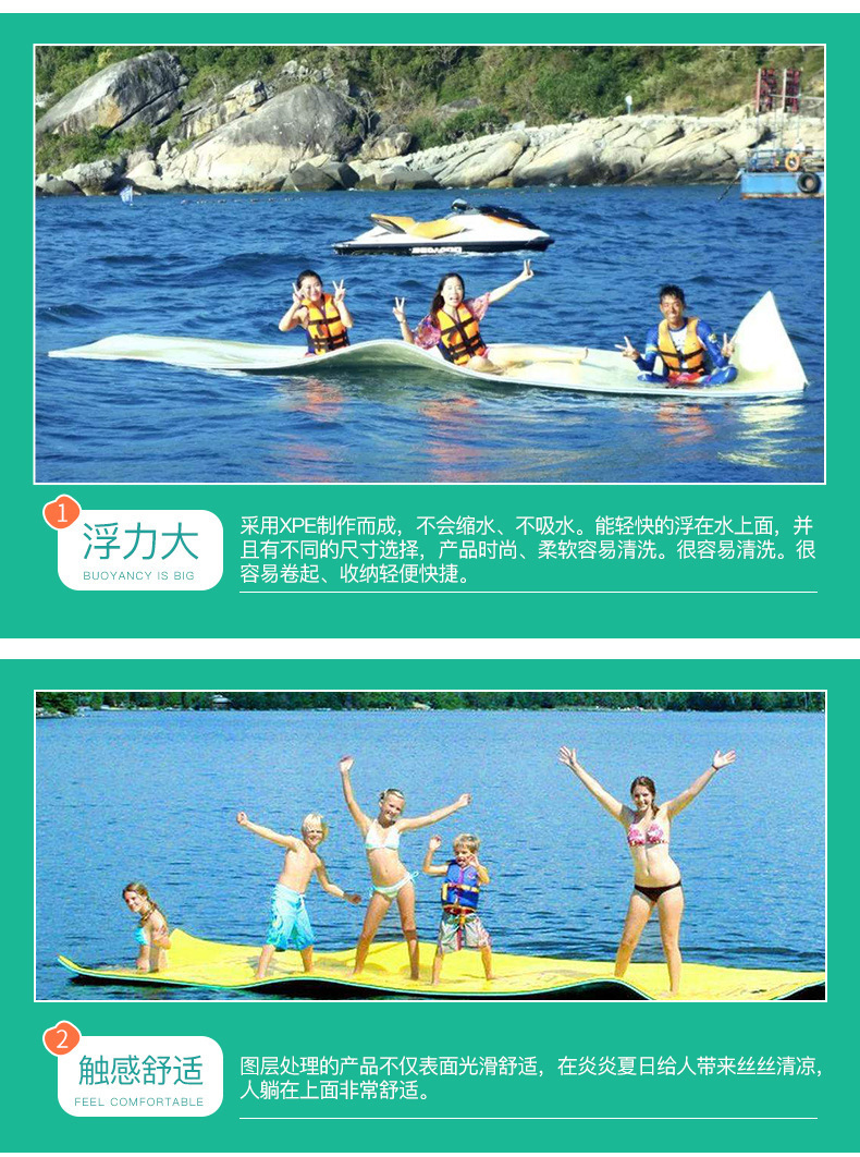 多層多色xpeブランケットは多くの人の水上クラブが国境を越えて人気のある屋外水上浮床環境保護を担っている