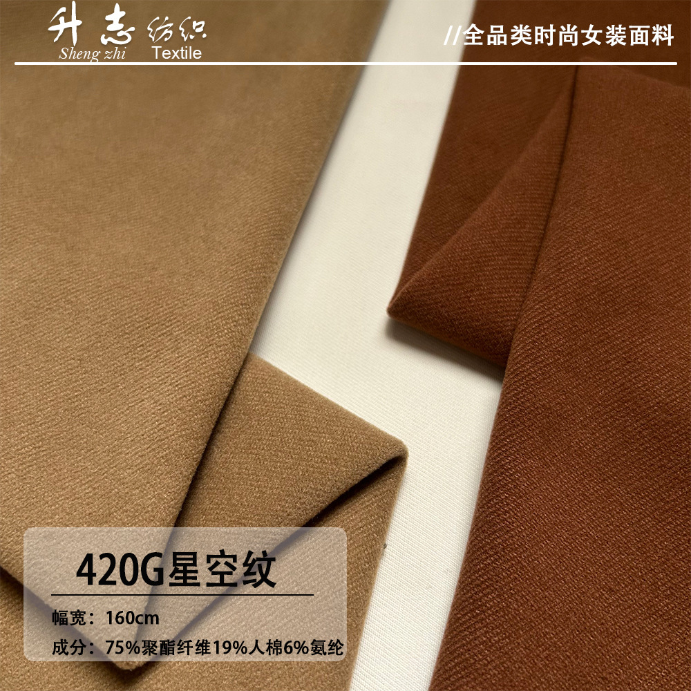 星空大斜紋 420g TR 厚手秋冬起毛ニット生地 ジャケット、ウールコート、パンツ素材