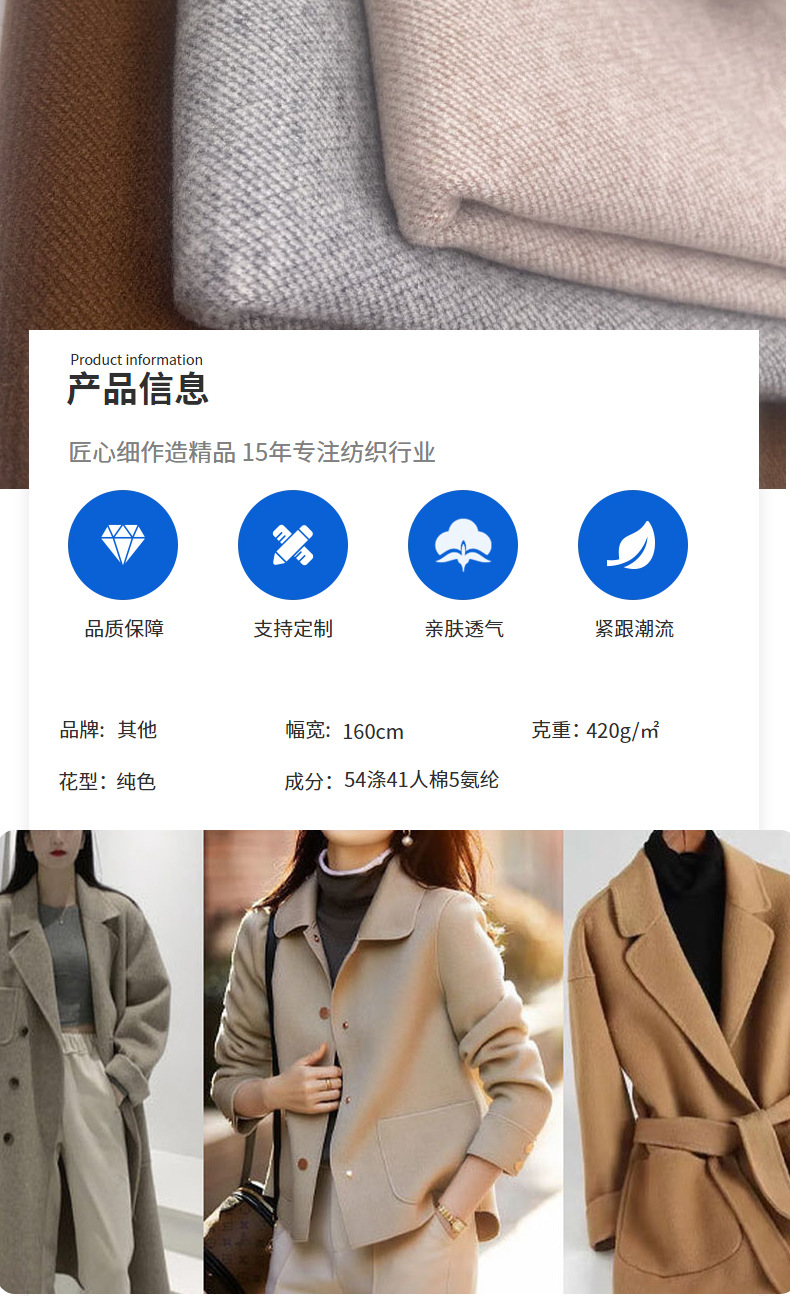 420g星空呢斜纹粗纺毛呢大衣面料 秋冬外套休闲装布料 TR毛呢布料