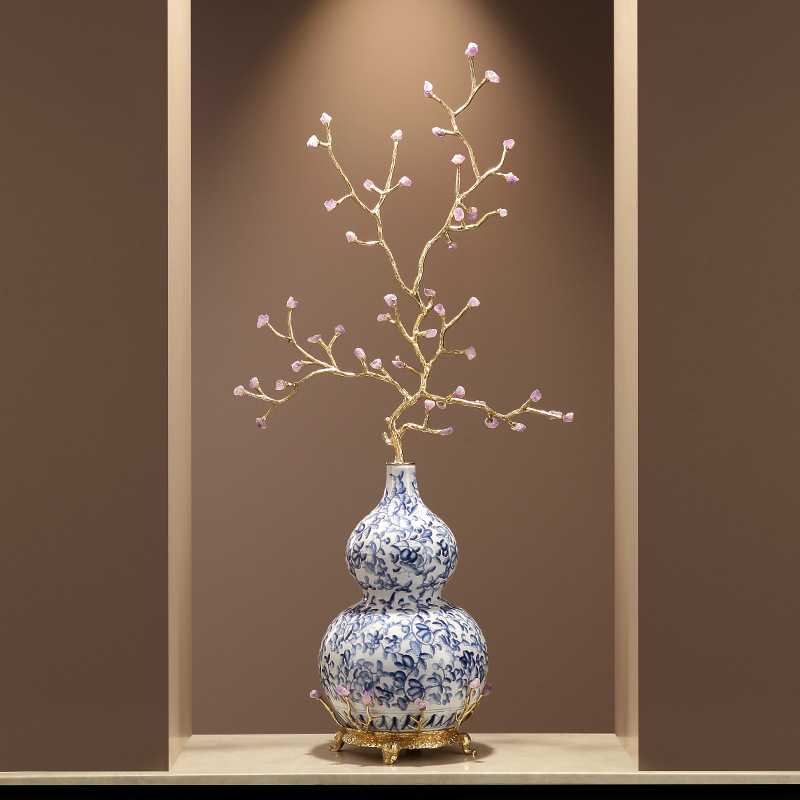 大サイズの陶磁器の真鍮の水晶のヒョウタンの置物の客間の玄関の床の間の現代の高級な喬迁の開業の贈り物の装飾