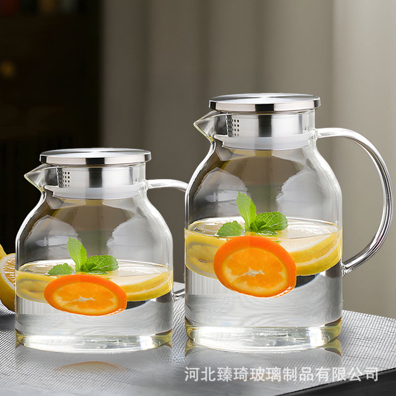 卸売り北欧風ガラス冷水ポットステンレス蓋高ホウ素シリコン冷水ポット家庭用耐高温ジュースポット
