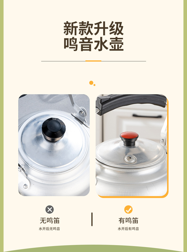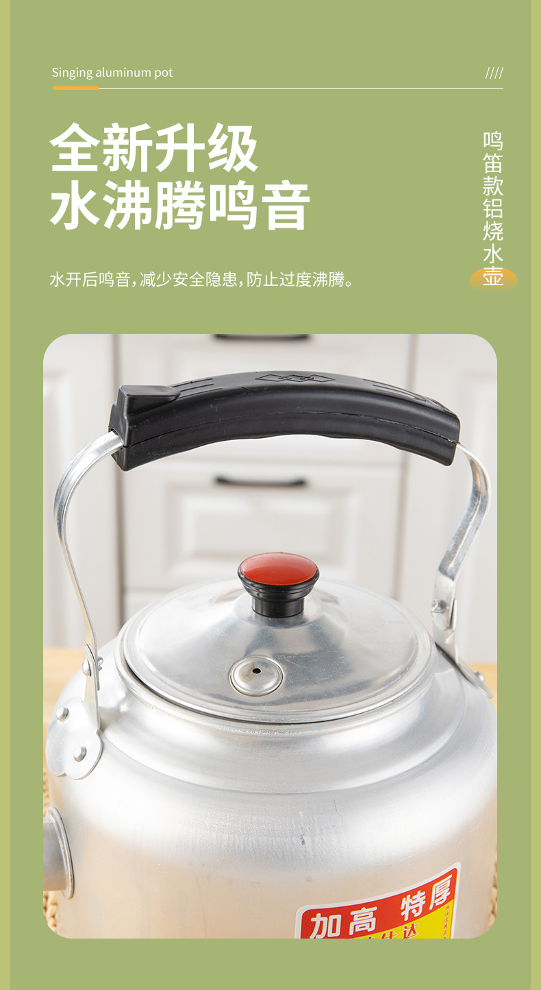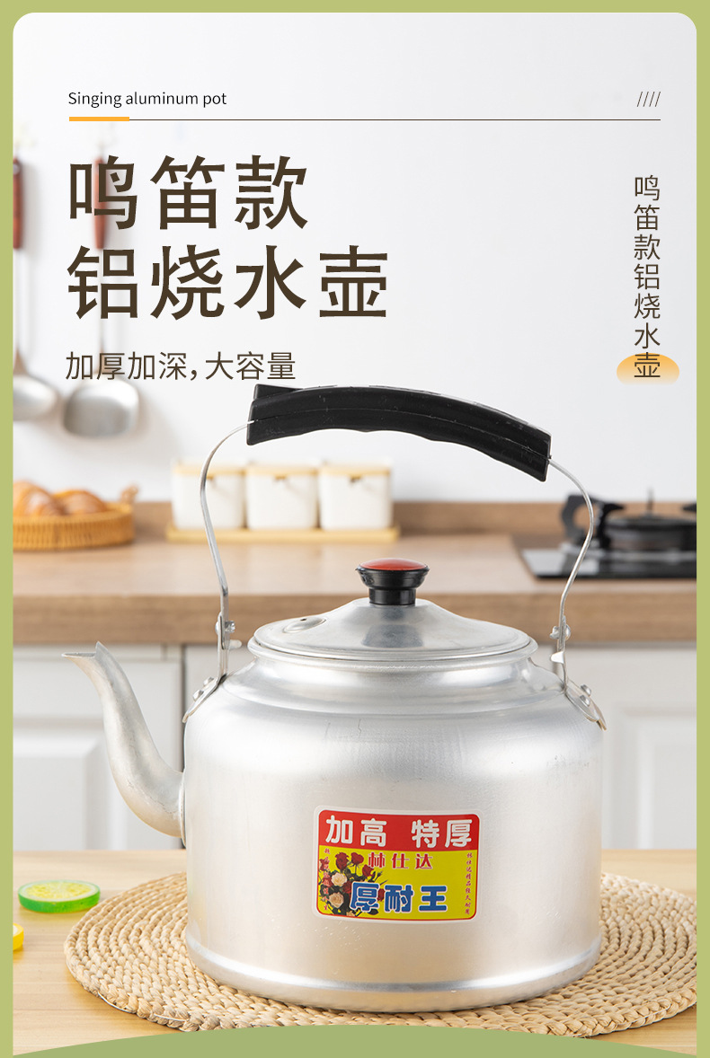 古いアルミ製アルミポットは伝統的に厚い大容量のサイレン付きガスガス家庭用ポット湯沸かし器を持っている
