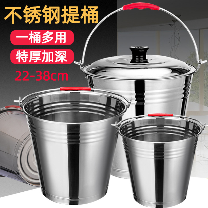 厚手のステンレス製水桶、持ち運び可能な幼稚園・家庭用貯水バケツ、油桶、鉄桶、業務用丸型水桶