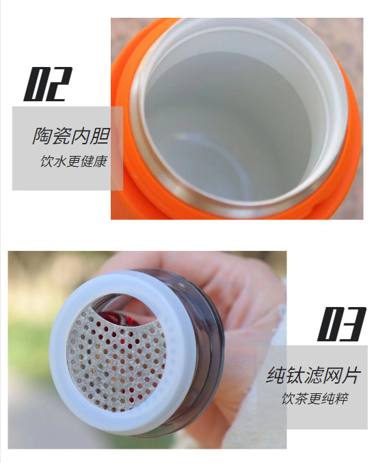 本物のセラミック内胆の保温カップ、コーティングなし、耐酸性、耐アルカリ性、茶葉を入れるためのフィルター付き、ポータブル、オフィスや家庭用、軽くて高級感のあるウォーターカップ